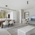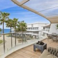 - Experience the ultimate in coastal luxury with this exquisite three-bedroom apartment, located in the prestigious beachfront development The Edge in Estepona. Positioned on the second floor and offering uninterrupted views of the Mediterranean, this elegant home combines refined modern design with a rare beachfront lifestyle on the New Golden Mile. The apartment boasts a spacious, light-filled living and dining area that seamlessly connects to a sleek, fully fitted open-plan kitchen—perfectly designed for both everyday living and entertaining. The master suite is a private retreat, featuring a walk-in dressing area and a stylish en-suite bathroom. Two additional guest bedrooms share a beautifully appointed bathroom, and there is a separate guest toilet for added convenience. Floor-to-ceiling glass doors open onto a generous covered front terrace with stunning views over the landscaped gardens, the infinity-edge pool, and the sparkling sea beyond. A second, southwest-facing rear terrace offers an ideal spot to unwind and enjoy the late afternoon sun in total privacy. Residents of The Edge enjoy exclusive access to top-tier amenities, including a 24-hour gated security service, a spectacular outdoor pool set in lush tropical gardens, a heated indoor pool, a state-of-the-art gym, and a luxurious spa area with sauna. The property also includes two underground parking spaces and a private storage room. Perfectly located just steps from the beach and within walking distance of shops and dining options, the apartment is only a short drive to Estepona port and the charming town centre. This stunning residence is ideal as a primary home, a luxury holiday retreat, or a smart investment in one of the Costa del Sol’s most coveted beachfront communities.