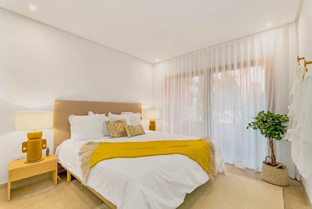 - Ground Floor Apartment for sale in Cabo Bermejo, Estepona with 3 bedrooms, 2 bathrooms, 1 on suite bathroom, 2 toilets and with orientation south/east, with communal swimming pool, private garage and communal garden. Regarding property dimensions, it has 130 m² built and 40 m² terrace. Has the following facilities front line beach, transport near, air conditioning, fully fitted kitchen, marble floors, guest room, storage room, dining room, security service 24h, guest toilet, private terrace, kitchen equipped, living room, underfloor heating (throughout), fitted wardrobes, gated community, lift, garden view, pool view, beach side, underfloor heating (bathrooms), close to sea / beach, close to golf, glass doors, recently renovated / refurbished, close to shops, close to town and pets allowed.