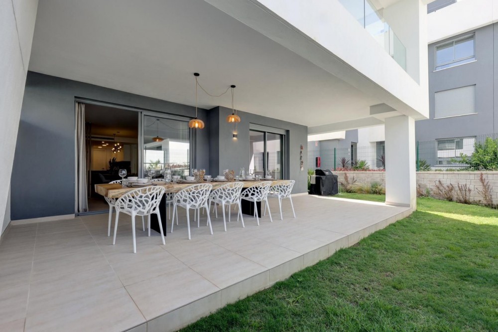 • **Stunning Ground Floor Apartment in New Golden Mile Estepona** Discover the epitome of modern living with this exquisite 2-bedroom apartment located in prestigious urbanización , just a stone's throw away from the beach. Perfectly positioned between Marbella and Estepona, this home offers the ideal blend of tranquility and convenience. Surrounded by lush nature and close to top-tier golf courses, it's a paradise for both relaxation and recreation. Step inside to find a beautifully furnished interior with all the comforts you could desire. The open-plan kitchen is fully equipped with luxury appliances, making it a chef's dream. The spacious living room features a comfortable sofabed and opens onto a private terrace and garden, perfect for entertaining or unwinding after a long day. The master bedroom boasts an ensuite bathroom and direct access to the terrace, while the second bedroom offers a cozy double bed and ample wardrobe space. With centralised air conditioning throughout, you'll stay comfortable year-round. Additional features include a private underground parking space, a storage room, and access to two large swimming pools, a kids' pool, gym, sauna, and more. This gated complex ensures security and peace of mind, making it an ideal choice for holiday homes, luxury living, or investment. Don't miss the opportunity to own a piece of paradise in one of the most sought-after locations on the Costa del Sol! Fully furnished. Ground Floor Apartment, Estepona, Costa del Sol. 2 Bedrooms, 2 Bathrooms, Built 93 m², Terrace 40 m², Garden/Plot 60 m². Setting : Close To Sea, Close To Town, Close To Schools, Urbanisation. Orientation : West. Condition : Excellent. Pool : Communal, Children`s Pool. Climate Control : Air Conditioning, Hot A/C. Views : Garden, Pool. Features : Covered Terrace, Lift, Fitted Wardrobes, Near Transport, Private Terrace, WiFi, Gym, Sauna, Paddle Tennis, Storage Room, Utility Room, Barbeque, Double Glazing, Fiber Optic. Furniture : Optional. Kitchen : Fully Fitted. Garden : Private, Easy Maintenance. Security : Gated Complex, Electric Blinds, Entry Phone, Alarm System, Safe. Parking : Underground, Garage, Covered, Street, Communal. Category : Holiday Homes, Luxury, Resale.