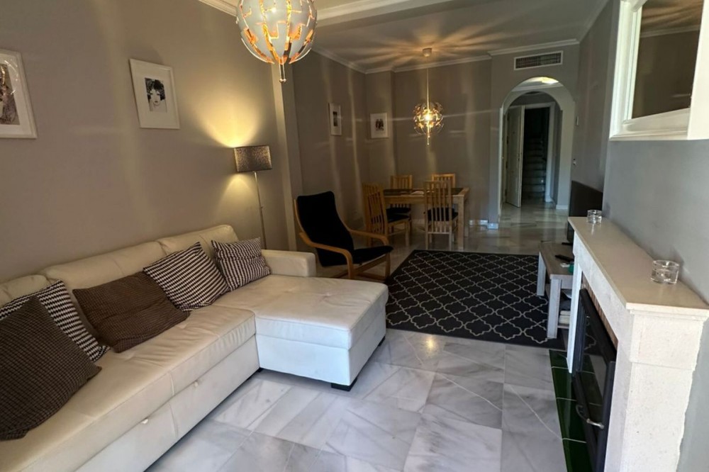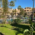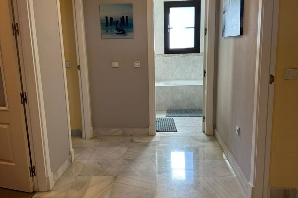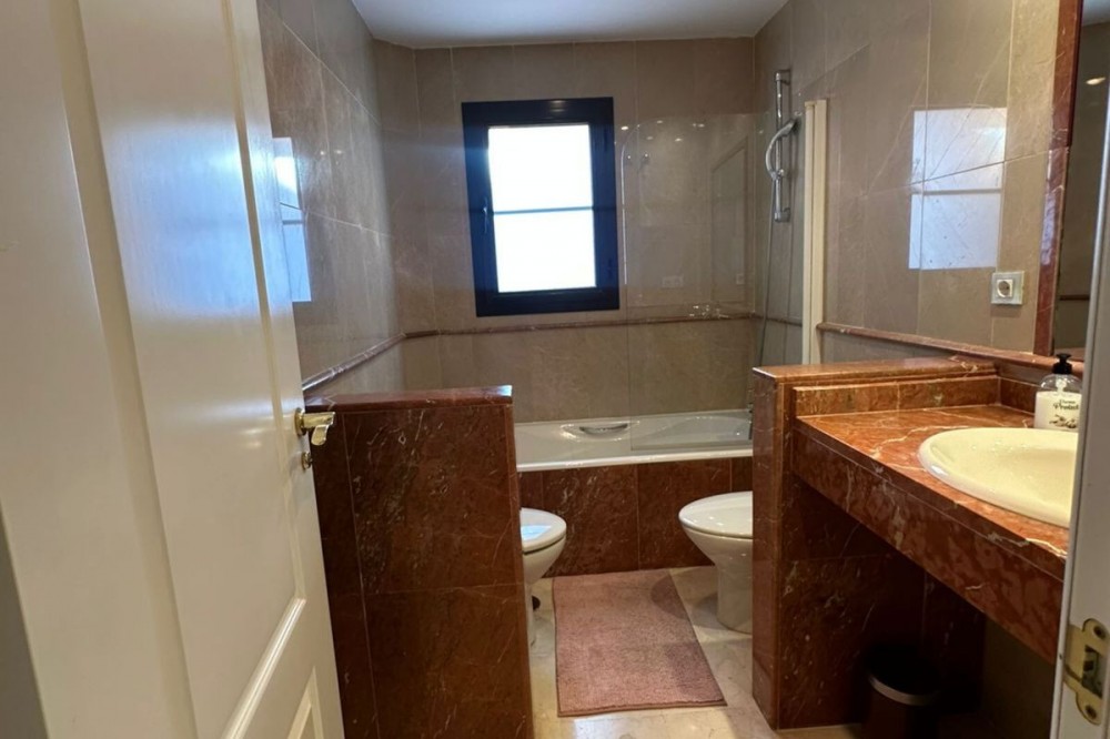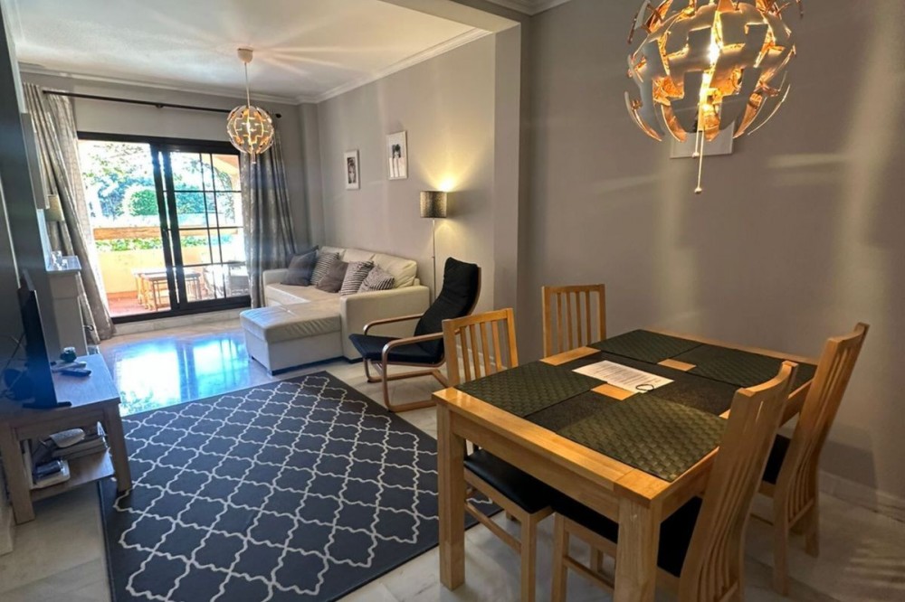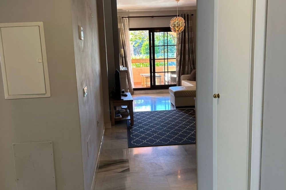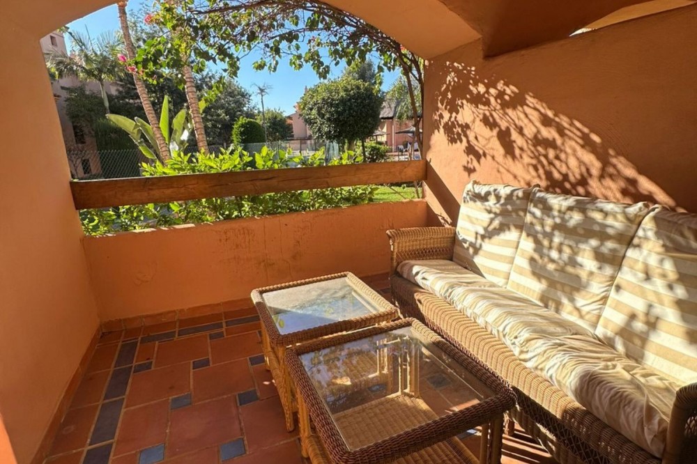 • Located in the gated community of Hacienda del Sol, this exceptional ground-floor apartment offers a rare opportunity to own one of the largest two-bedroom units in the complex. Just steps away from the beach in the desirable Atalaya area of Estepona, this property boasts spacious living areas and an enviable south-facing orientation. Situated directly across from one of the complex’s five pools, the apartment perfectly combines comfort and convenience. From the private terrace, you can enjoy serene outdoor living, with just a few steps—less than 10 meters—leading you to the pool. Inside, the apartment features a welcoming hallway, a spacious living room with a cozy fireplace, and a fully equipped kitchen with an adjoining laundry room. The master bedroom includes a complete en-suite bathroom with a bathtub, walk-in shower, and double sinks, as well as ample closet space and direct terrace access. A comfortable guest bedroom and a guest bathroom complete the layout. The property is sold fully furnished, including the added convenience of underground parking. Hacienda del Sol offers an unparalleled lifestyle, located just a two-minute walk from the beach and within walking distance of supermarkets and shops just outside the complex. A short drive takes you to San Pedro in five minutes and Puerto Banús in ten. The community itself is secure, with 24-hour gated security, and offers a wide range of amenities, including five pools, a gym, a tennis court, and the largest indoor jacuzzi on the Costa del Sol.