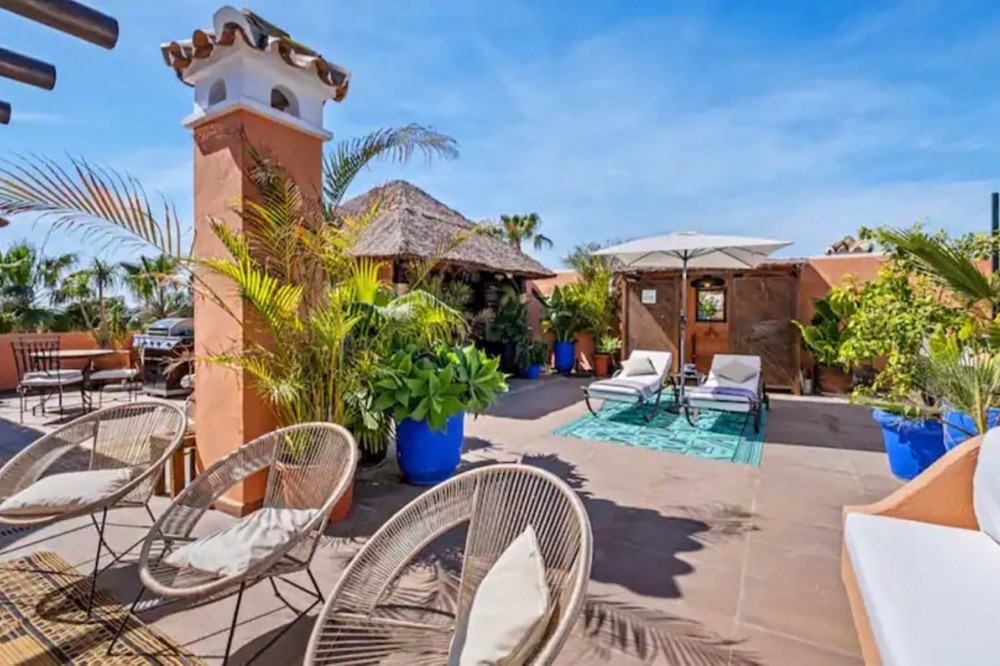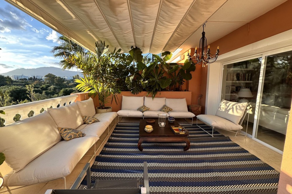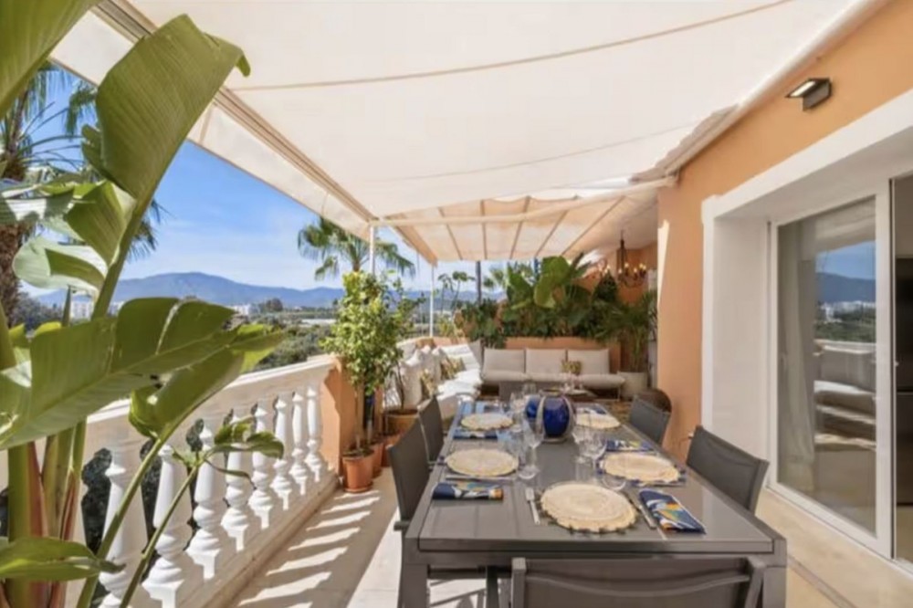- Live just 80 meters from the beach! Stunning Penthouse with harmonious spaces and views – New Golden Mile Located in a beachfront residence on the New Golden Mile, this exceptional property enjoys a prime location: close to shops, schools, golf courses, and equidistant from the prestigious towns of Puerto Banus and Estepona. A southwest orientation offers spectacular sunsets and panoramic views of La Concha, Sierra Bermeja, and partial sea views. Renovated in 2022, this penthouse impresses with its generous spaces and high-quality features: A spacious and bright living area with fireplace and a fully equipped open kitchen. This living space opens onto a large 40 m² southwest-facing terrace with calming views over the surrounding nature and the Sierra Bermeja. A master suite with private bathroom and terrace access. Three additional bedrooms or 2 bedrooms + 1 office, all with built-in wardrobes and two en-suite bathrooms. A 145 m² solarium, offering total privacy. High-end features: quality renovation, underfloor heating in bathrooms, individual reversible hot/cold air conditioning in every room, fireplace insert, and double glazing for optimal comfort. Secure residence: complex with two large pools and beautifully landscaped gardens, ensuring absolute tranquility. Included in the price: one underground parking space. An exceptional property, perfect as a primary residence, holiday home, or profitable rental investment thanks to its strategic location and high demand on the Costa del Sol. Don’t miss this unique opportunity. Contact us to schedule a visit!