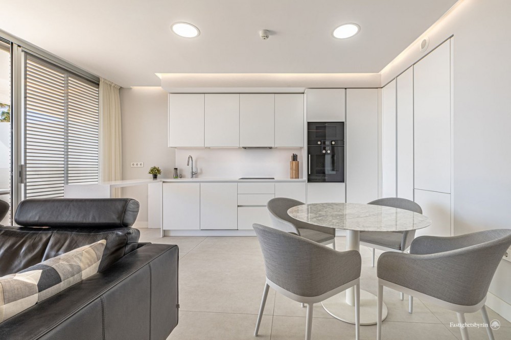 • Spectacular sea views, five minutes drive to Estepona and 15 minutes to Puerto Banus. Modern frontline beach development on the beach promenade, consisting of 68 flats. It has very well kept gardens, infinity pool, conference and meeting room, gymnasium and spa area with indoor heated pool, jacuzzi, hamman and sauna. This spectacular and luminous flat where you can enjoy the best views, has two bedrooms, 2 bathrooms with Dombracht finishes and 2 terraces, the main one with views to the garden and the sea, as well as a spacious open plan living room-kitchen with prestigious Gaggenau appliances, garage, storage room and 24h security. This luxury flat is perfect given its privileged location and the high end services it offers to become your new home. Come and see it.