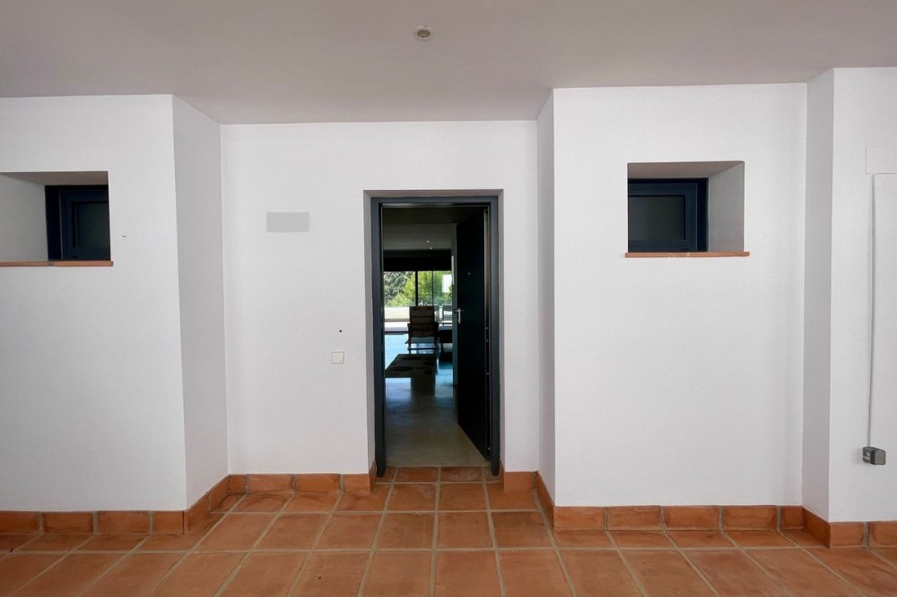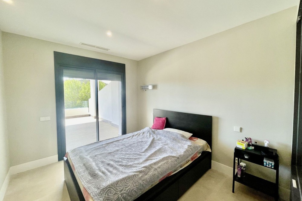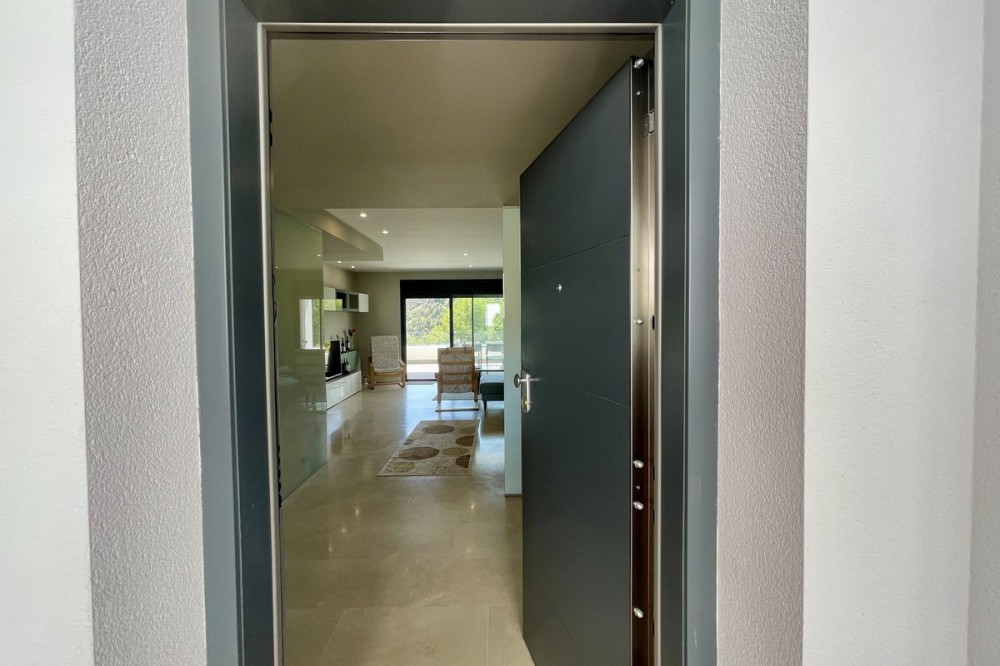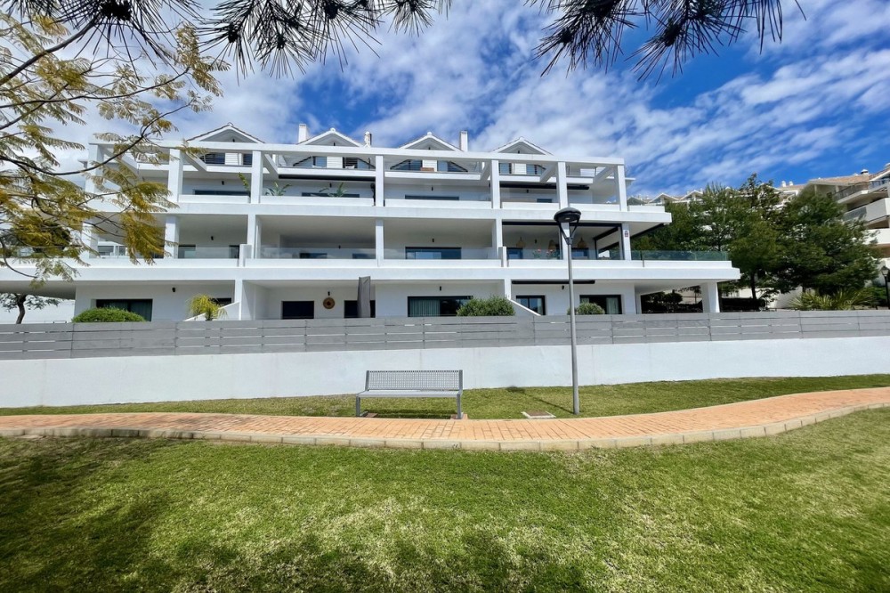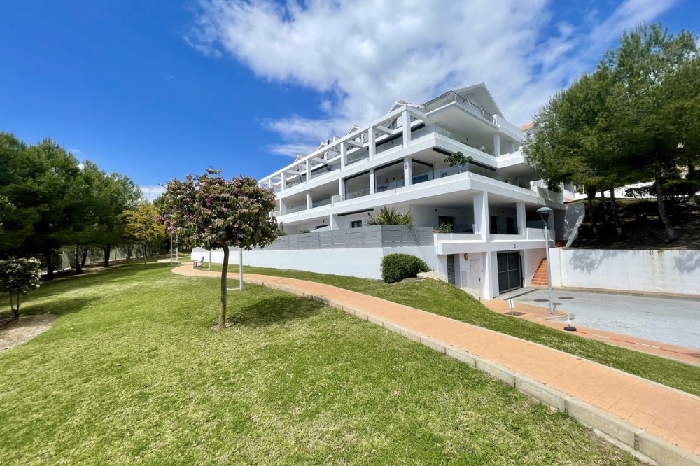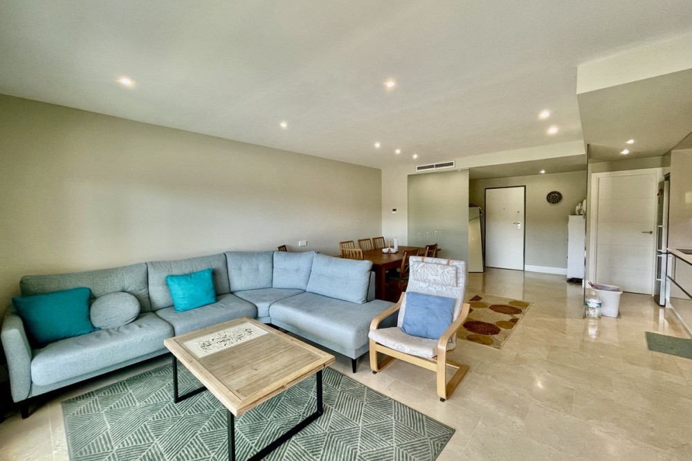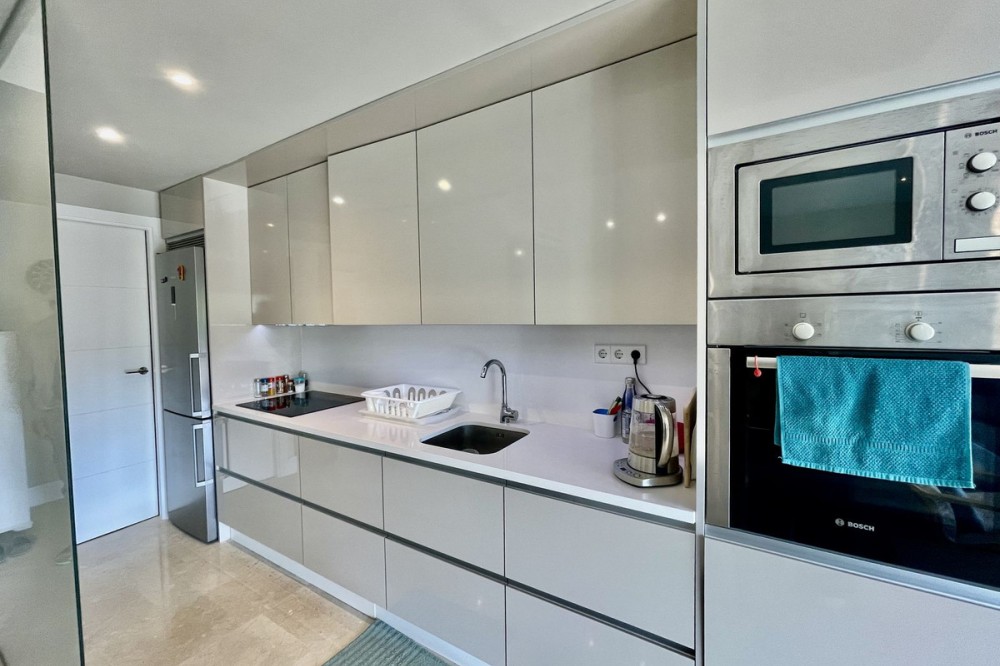 • This stylish two-bedroom, two-bathroom apartment is located on the first floor of the sought-after Ocean Hills complex in Selwo, Estepona. Completed in 2017, the property offers a generous 94 m² built area, with 80 m² of usable interior space, complemented by an impressive 51 m² terrace. The terrace, featuring both covered and open areas, is ideal for outdoor living year-round, with open green views creating a serene and private setting. There is also the option to enclose part of the terrace with Lumon glass curtains, adding a versatile space that can be enjoyed in all seasons. Inside, the apartment boasts a bright and airy layout with an open-plan living and dining area that flows seamlessly onto the terrace. Both bedrooms are spacious and enjoy direct access to the outdoor area, enhancing the indoor-outdoor lifestyle this home offers. The property is finished to a modern standard throughout, with two full bathrooms and a fully fitted kitchen with Bosch appliances and separate utility room. It is sold with a private parking space and a separate storage unit. Ocean Hills is a contemporary complex with beautifully maintained gardens and communal swimming pools, all set within a peaceful environment. Community fees are low, at just €180 per month, making this a fantastic opportunity as a permanent residence, holiday getaway, or investment.