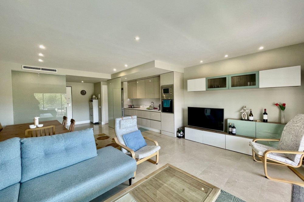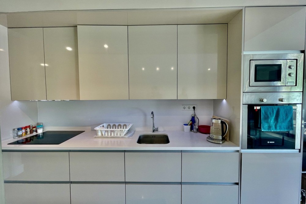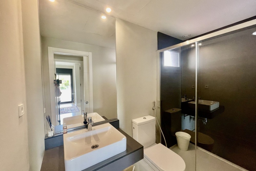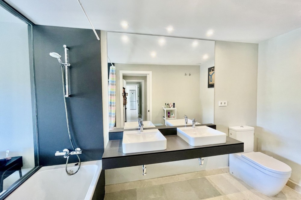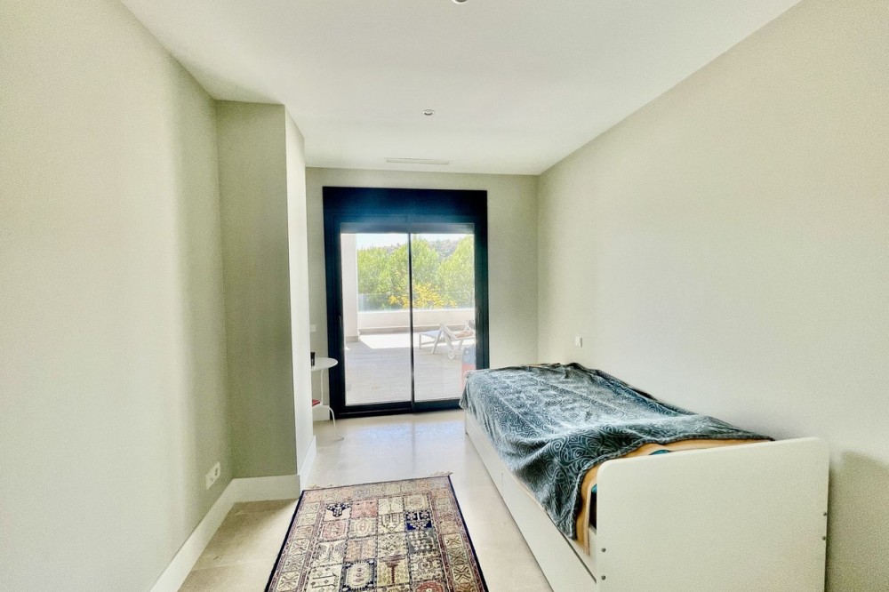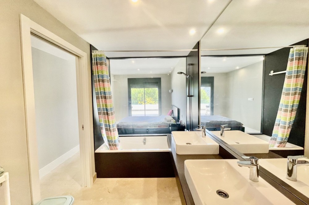 • This stylish two-bedroom, two-bathroom apartment is located on the first floor of the sought-after Ocean Hills complex in Selwo, Estepona. Completed in 2017, the property offers a generous 94 m² built area, with 80 m² of usable interior space, complemented by an impressive 51 m² terrace. The terrace, featuring both covered and open areas, is ideal for outdoor living year-round, with open green views creating a serene and private setting. There is also the option to enclose part of the terrace with Lumon glass curtains, adding a versatile space that can be enjoyed in all seasons. Inside, the apartment boasts a bright and airy layout with an open-plan living and dining area that flows seamlessly onto the terrace. Both bedrooms are spacious and enjoy direct access to the outdoor area, enhancing the indoor-outdoor lifestyle this home offers. The property is finished to a modern standard throughout, with two full bathrooms and a fully fitted kitchen with Bosch appliances and separate utility room. It is sold with a private parking space and a separate storage unit. Ocean Hills is a contemporary complex with beautifully maintained gardens and communal swimming pools, all set within a peaceful environment. Community fees are low, at just €180 per month, making this a fantastic opportunity as a permanent residence, holiday getaway, or investment.