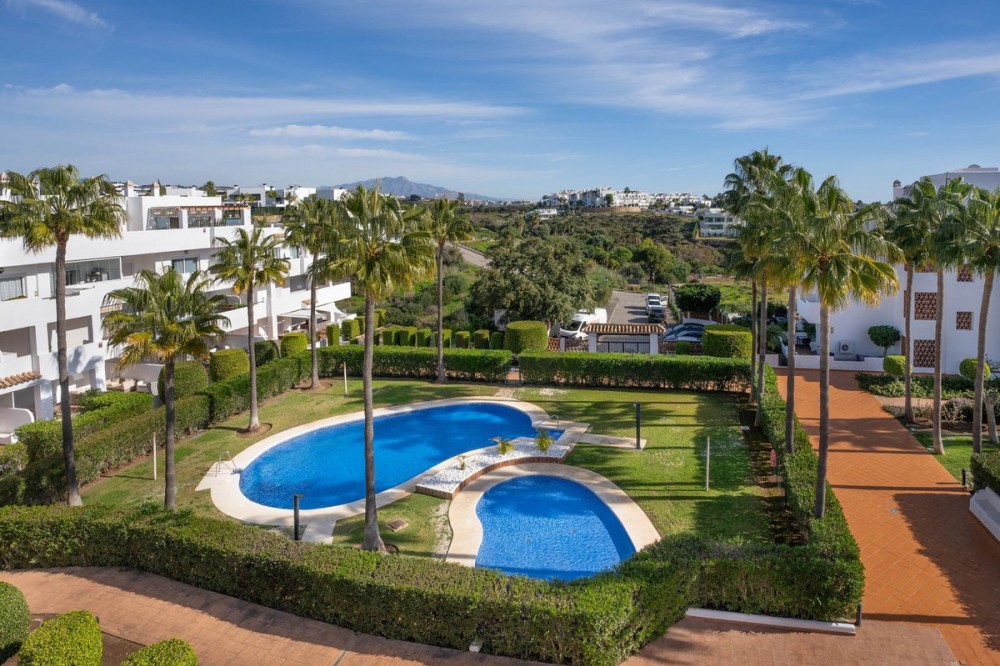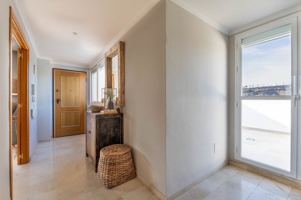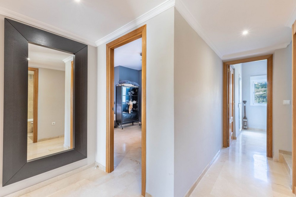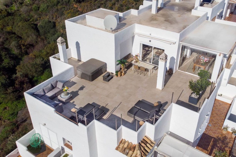 • Exquisite duplex penthouse with panoramic mountain and country views in Lunymar Golf, New Golden Mile, Estepona Nestled in the highly sought-after New Golden Mile of Estepona, this spectacular furnished duplex penthouse offers a perfect blend of luxury, comfort and modern design. With expansive terraces, generous living spaces and stunning mountain and country views, this property is an ideal haven for those seeking a tranquil yet convenient lifestyle. The penthouse opens into a bright and spacious living room, featuring a covered and enclosed extension of the living space on the terrace. With 171 m² of terrace space divided across three distinct terraces (west, east, and south-facing), you'll enjoy panoramic views and plenty of room for outdoor dining, lounging, and relaxation. The terrace also includes a jacuzzi, perfect for unwinding in style. The fully equipped kitchen is complemented by a separate wash area and ample storage space, ensuring practicality and convenience. This level offers an ideal flow for both daily living and entertaining guests. Internal stairs lead to the other level, where you’ll find four spacious bedrooms, including a master bedroom with an en-suite bathroom. The additional three bedrooms share a second well-appointed bathroom. Two of the bedrooms open onto a shared terrace, offering yet another opportunity to enjoy the Mediterranean lifestyle. Additional Features: A large 50 m² storage room in the basement, perfect for all your extra belongings. Two private parking spaces for ultimate convenience. Access to a community pool area and a fully equipped gym, providing a fantastic setting for relaxation and fitness. Location This penthouse is ideally located just 13 minutes from Puerto Banús, 10 minutes from Estepona Center, and a mere 4-minute drive to the beach, giving you the perfect balance of serenity and accessibility. Lunymar Golf is located in La Resina Golf, New Golden Mile, Estepona (Selwo area). The gated urbanisation offers a lagoon style swimming pool area, gardens and a gym. The peaceful urbanisation is surrounded by nature and situated next to the Selwo Aventura theme park, a stone’s throw from amenities and the beach, between Marbella and Estepona.