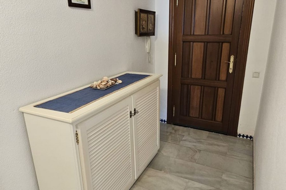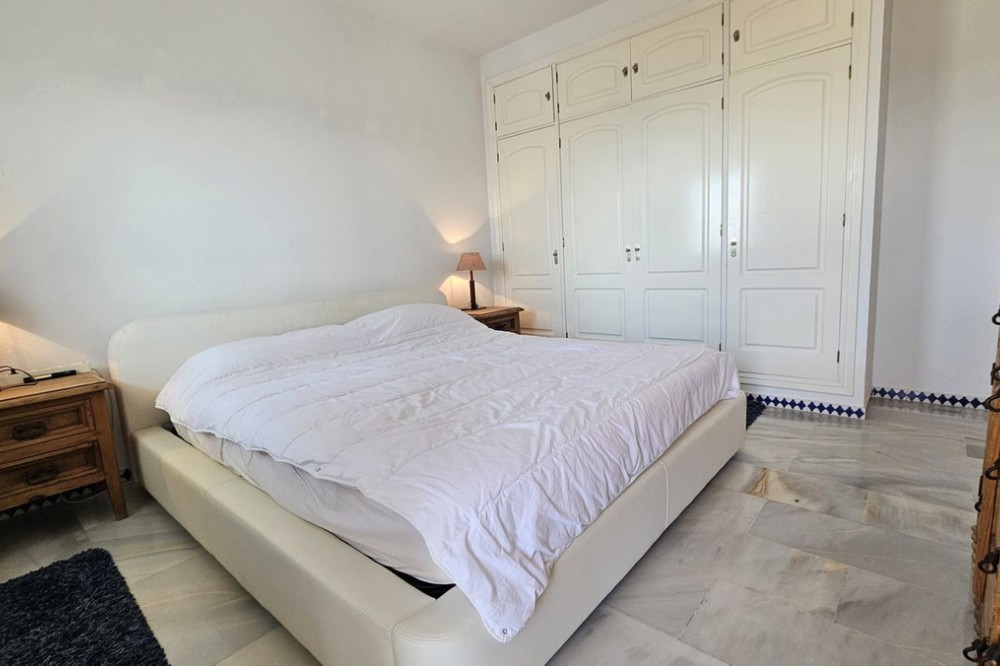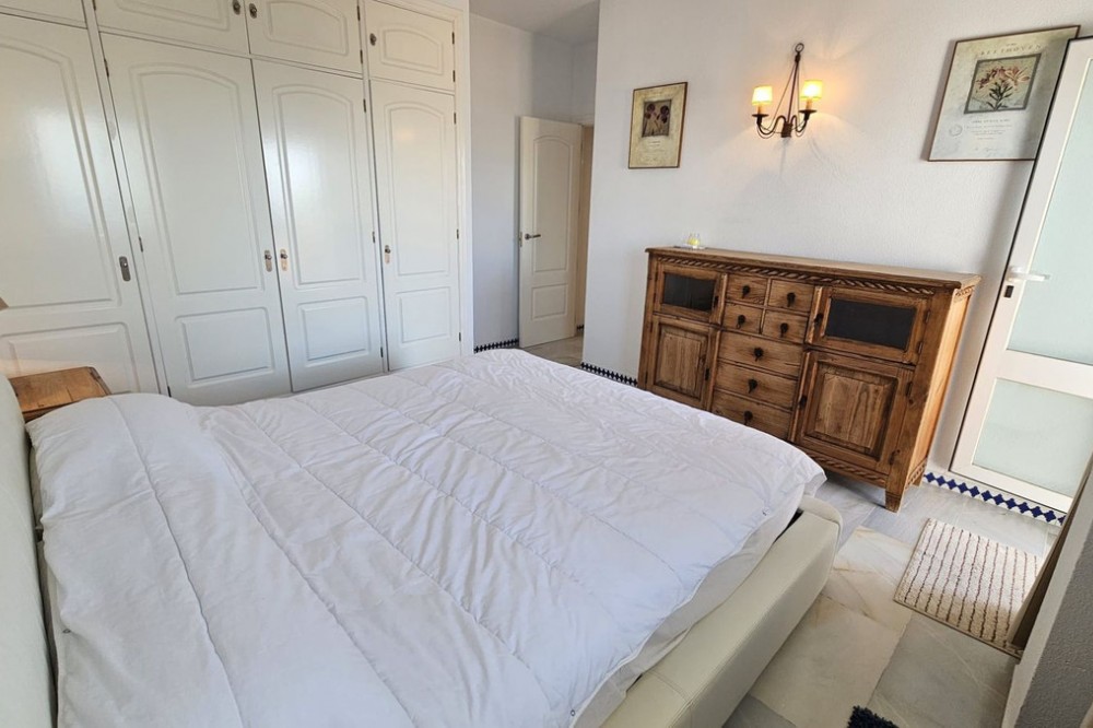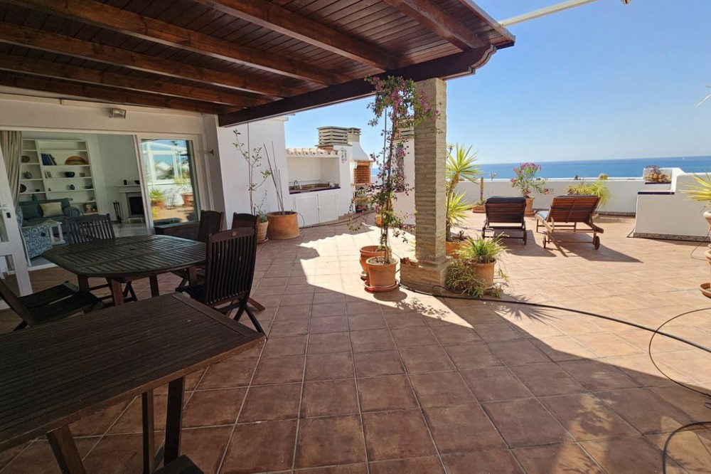 - Semi-penthouse Located on the fourth floor of a sought-after beachfront development, this bright and spacious apartment offers stunning, uninterrupted views of the Mediterranean Sea and the Estepona coastline. Thanks to its south-facing orientation, the home enjoys all-day sunshine, making it an ideal place for living or spending long stays by the sea. The property features a generous living-dining room with a fireplace and recently installed air conditioning, which opens directly onto a spacious, partially covered 85 m² terrace. This outdoor space is perfect for relaxing, sunbathing, or enjoying al fresco meals with unparalleled sea views. The kitchen is separate and fully equipped, with a renovated electrical system. From the terrace, also with recently renovated electrical system and plumbing, you can enjoy an open and unobstructed panoramic view. The home has three double bedrooms, all with built-in wardrobes. One of the bedrooms has direct access to the terrace. Two full bathrooms complete the layout. Sold fully furnished, ready to move into. The residential complex offers excellent communal areas: a communal pool, mature gardens, a tennis court, and a social area with a barbecue. It also has direct access to the promenade and the beach, and is just a few minutes' walk from the marina and the charming historic center of Estepona. Includes a parking space and storage room in a gated community with security. A unique property for both permanent residence and holiday investment.