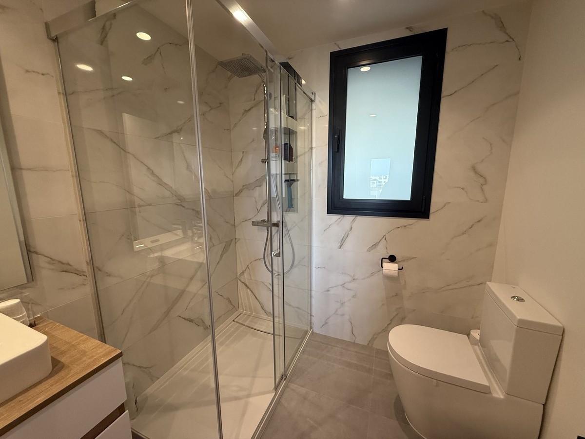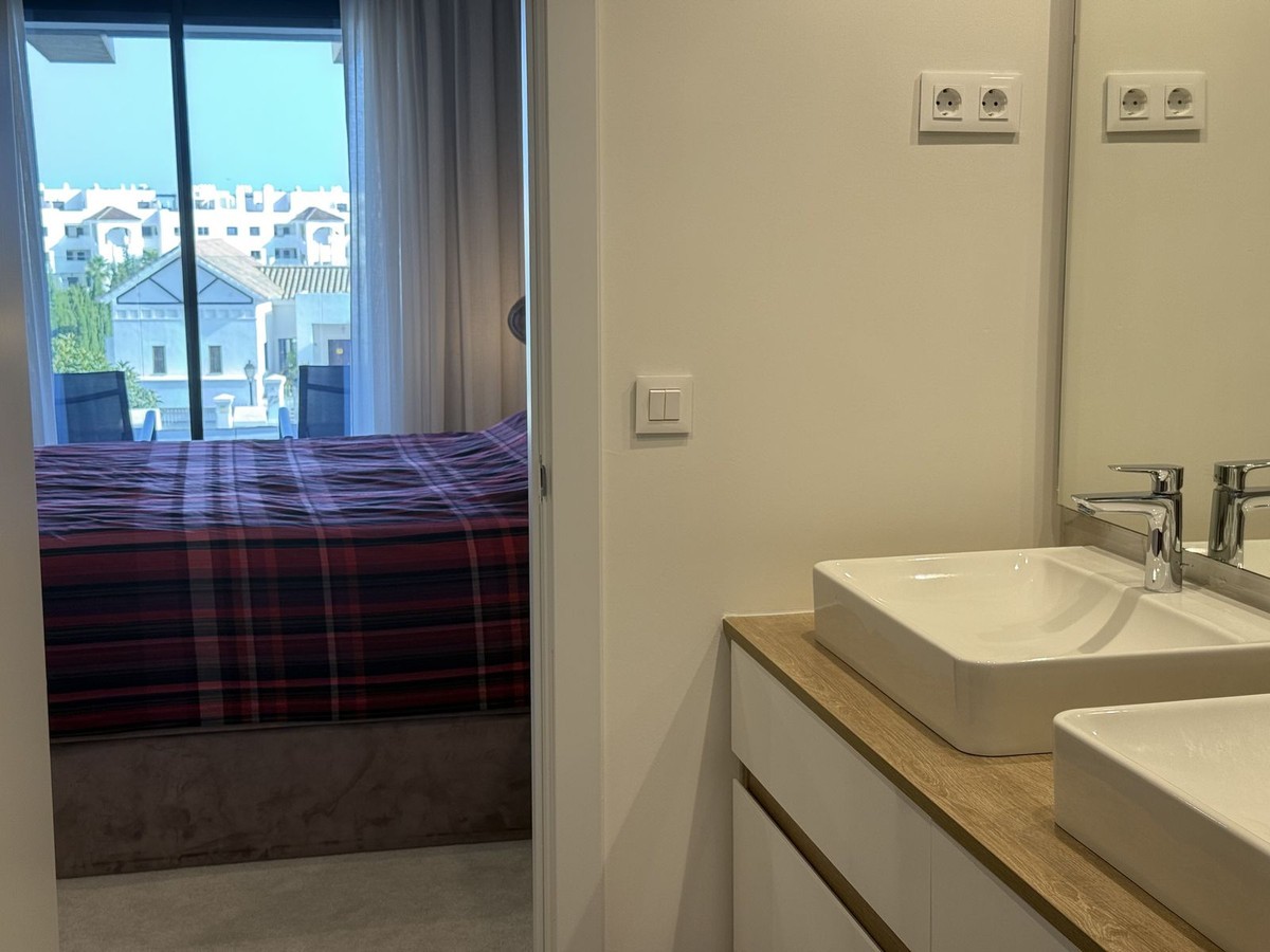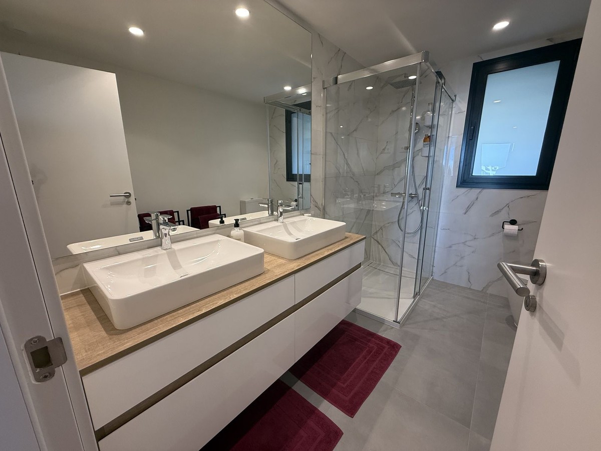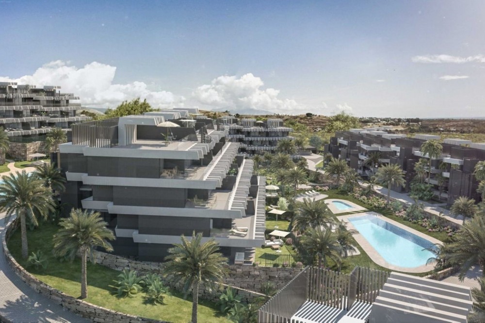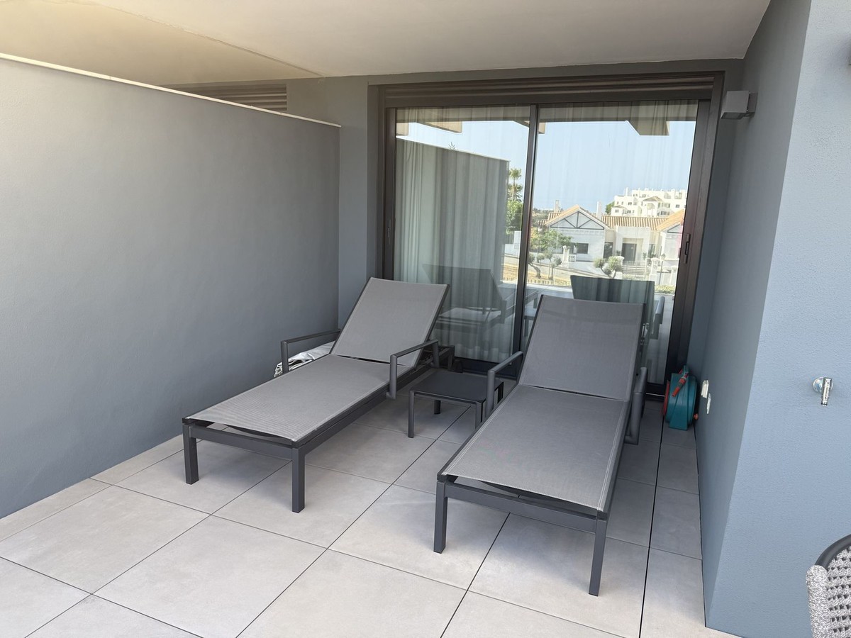 - Elegant 2-Bedroom Apartment with Sea Views in Oasis 325 – Turn-Key with (optional) Designer Furnishings On the gentle hills that follow the Guadalmansa River on its way to the sea lies Oasis 325 – a privileged residential enclave ideally located between Estepona and Marbella. Its elevated position offers breathtaking views over the Mediterranean and surrounding natural areas, creating a serene, private atmosphere just minutes from the best of the Costa del Sol. This beautifully appointed 2-bedroom apartment is situated on one of the best spots within the development, offering uninterrupted sea views, lush green surroundings, and exceptional peace. Delivered in 2021–2022 and maintained in impeccable condition, the property is presented fully furnished with refined designer pieces and is ready to move into – a true turn-key residence. The interior living space of 102 m² flows naturally into a spacious 28 m² terrace that faces southwest, ensuring sun from late morning until sunset. The layout includes an open-plan living and dining area with large sliding doors that open directly onto the terrace. The fully equipped kitchen is centered around a sleek island with integrated induction hob, combining elegance and functionality in a space designed for both cooking and socialising. The master bedroom offers direct access to the terrace and enjoys spectacular views of the sea – a rare and privileged feature. The second bedroom is also generously sized, and both bathrooms are equipped with walk-in showers and finished in a modern, minimalist style. Throughout the apartment, high-quality materials, tasteful decoration, and abundant natural light create an atmosphere of calm and understated luxury. The terrace itself is ideal for year-round enjoyment, featuring a cosy side corner that captures the lower winter sun and a smart, automatically retractable sun awning that adjusts based on wind strength. Thanks to a large protected green zone in front of the building, the views will remain unobstructed indefinitely, offering permanent visual space, silence, and privacy. As a resident of Oasis 325, you’ll enjoy access to a wide range of first-class facilities designed to promote wellness and relaxation. These include an outdoor infinity pool with separate children’s section, both surrounded by soft-touch synthetic grass, and a heated indoor pool with a beautiful cascade fountain. The wellness area features a sauna and Turkish bath, and the fully equipped gym includes separate male and female changing rooms, each with showers and private lockers. A modern co-working lounge completes the offering, ideal for remote professionals or digital nomads. The apartment comes with one underground parking space and a spacious private storage room in the basement, with more than enough space for electric bikes and additional storage needs. Additional features include energy-efficient hot and cold air conditioning, solar-assisted aerothermal water heating, double-glazed windows, and high thermal insulation, contributing to the property’s excellent A/B energy rating. This property represents a rare opportunity to enjoy modern Mediterranean living at its finest – combining panoramic sea views, timeless design, and full peace of mind in one of the most desirable developments on the Costa del Sol. Design furniture is not included in this price but possible at additional cost (30K)