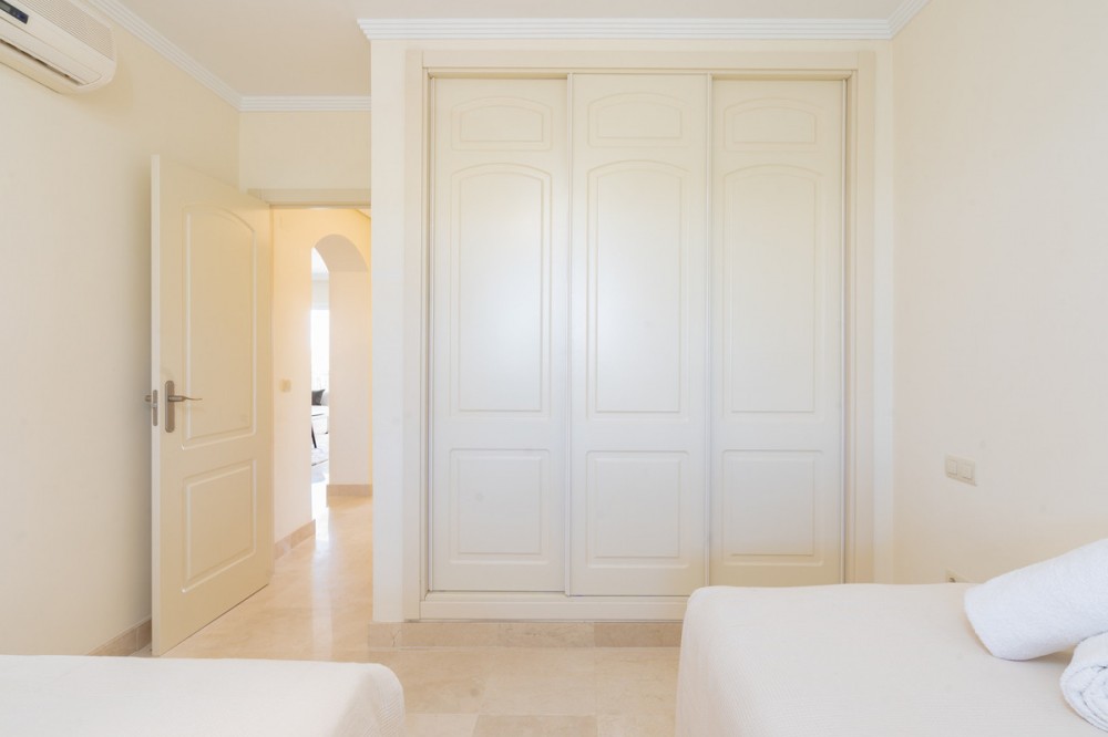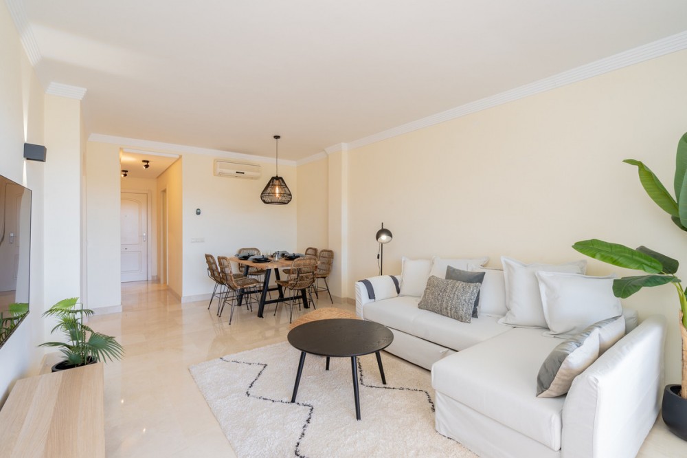 • This bright and welcoming apartment offers 2 bedrooms and 2 bathrooms, set within a secure gated community featuring private parking, lift access, and beautifully maintained gardens. Large windows fill the home with natural light and open onto picturesque views of the mountains and the stunning organic-style communal swimming pool. The community itself provides a safe and tranquil environment, perfect for families or those seeking a peaceful retreat. Residents can enjoy easy access to walking paths, green spaces, and nearby sports facilities. The location is ideal, just a short drive from the sparkling Mediterranean coast, exclusive beach clubs, and the renowned Selwo Aventura Zoo. International schools, supermarkets, gourmet restaurants, and leisure facilities are all within easy reach. For those who enjoy outdoor activities, there are golf courses, tennis clubs, and hiking trails nearby. Estepona town: approx. 10 minutes Marbella: approx. 15 minutes Málaga Airport: approx. 45 minutes This is a wonderful opportunity to embrace the Costa del Sol lifestyle, whether as a holiday retreat or a full-time residence. Kindly note that short term rentals are not allowed in this complex.