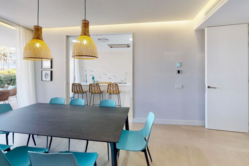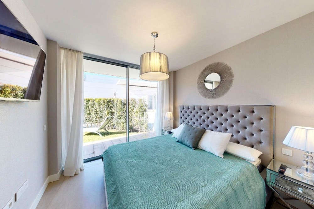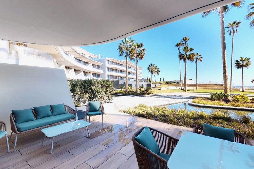 • This charming ground floor flat is located in an exclusive development in the beautiful coastal town of Estepona, known for its Andalusian charm, golden sandy beaches and relaxed atmosphere. This home features two bedrooms and two bathrooms, a spacious living room and a generous terrace. The bedrooms open onto a beautiful private garden. The integration of indoor and outdoor spaces allows you to enjoy the Mediterranean climate and views over the lush gardens of the urbanisation. Equipped with the latest amenities, the flat features state-of-the-art home automation systems and aerothermal technology to ensure energy efficiency and comfort. The kitchen is equipped with Gaggenau appliances, offering a high quality culinary experience. The materials used throughout the property are first class, which is reflected in every corner. Furthermore, this flat comes with two parking spaces and a storage room to provide additional storage space and convenience. The development offers a wide range of luxurious amenities such as a spa for total relaxation, a first class gym to keep you active, an indoor swimming pool for your all-season enjoyment and a communal pool for socialising with other residents. The coworking area is perfect for those looking for a quiet and productive workspace. Security is a priority, with a 24-hour security team available, providing peace of mind for residents and their belongings. In addition, direct access to the beach from the development allows you to enjoy the Mediterranean Sea in a matter of seconds, providing the seaside living experience you have always dreamed of. This ground floor flat in Estepona is the perfect combination of luxury, comfort and an exceptional location in a coastal town with a unique and charming atmosphere. Don't miss the opportunity to live life by the sea at its best in this privileged enclave on the Costa del Sol.