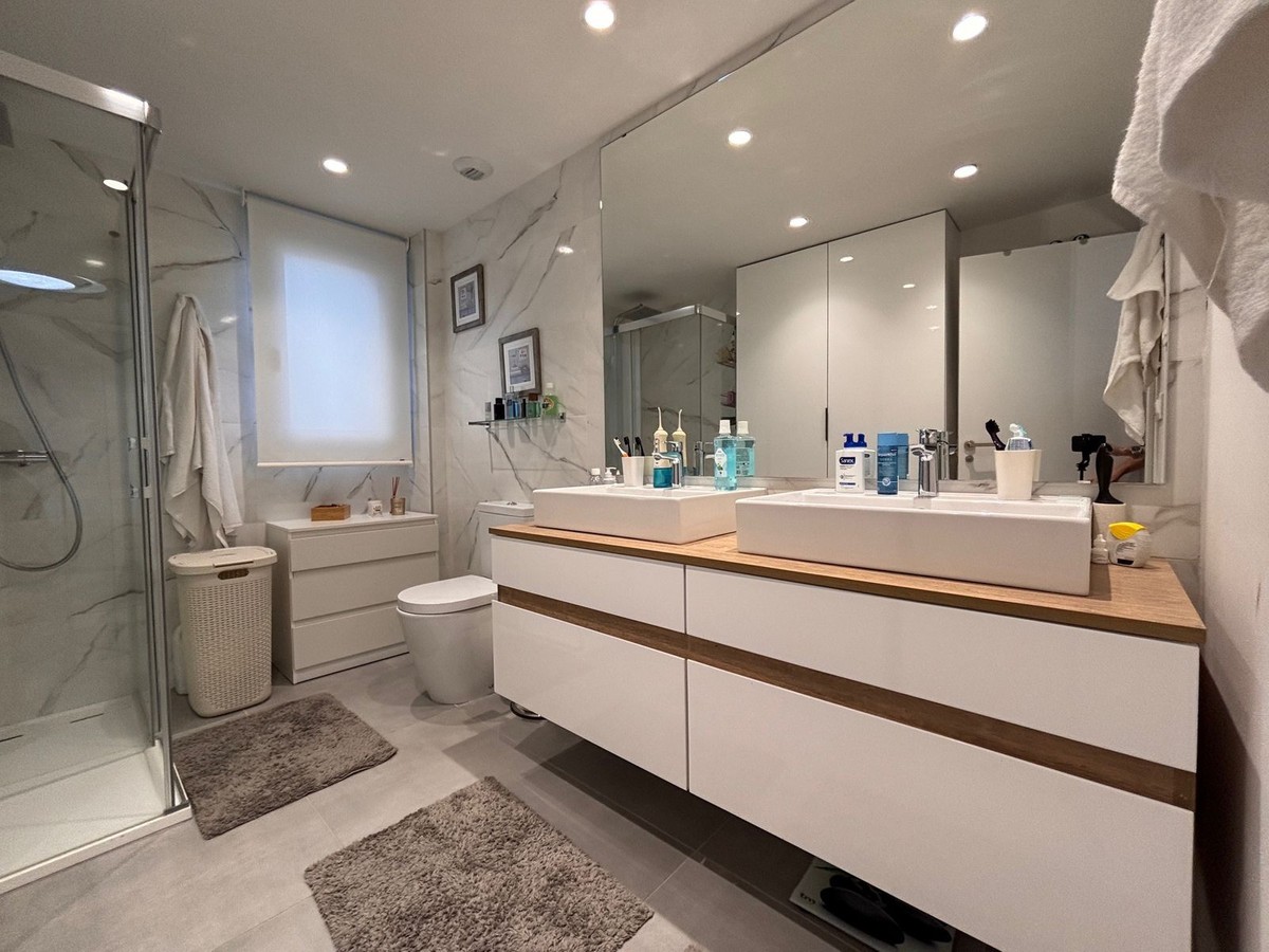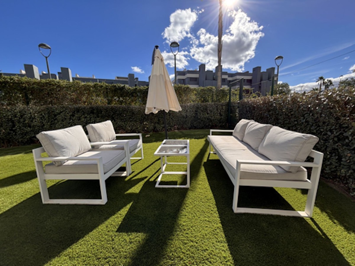 - Modern Mediterranean corner ground-floor apartment located between Estepona and Puerto Banús, offering a unique opportunity to enjoy an exclusive lifestyle in the sought-after area of La Resina. Featuring three bedrooms and two bathrooms, this property stands out for its contemporary design and seamless connection between indoor and outdoor spaces. Its south-facing orientation ensures natural light throughout the day, while the spacious private garden with pool views creates an ideal setting for relaxation or social gatherings in total privacy The open-concept living room, dining area and kitchen flow effortlessly onto the terrace and garden, creating a bright, spacious and welcoming environment. The kitchen is equipped , extended cabinetry and a separate laundry area. The master bedroom includes a charming enclosed terrace that provides an additional sunlit and serene space. All bedrooms feature built-in wardrobes and electric shutters, while the overall finishes reflect a high standard of quality, comfort and style The residential complex offers a range of exclusive amenities designed to enhance the comfort and well-being of its residents, including a heated indoor pool, fully equipped gym, spa with sauna and steam room, and an elegant clubhouse for private events and social gatherings. The landscaped gardens surround a large outdoor swimming pool. In 2025, an exclusive paddle club with eleven courts, wellness area and restaurant will open, further increasing the appeal of this premium community The location is exceptional, with easy access to both Estepona and Puerto Banús and surrounded by top-tier services including the Atlas American School of Málaga with over 700 students, the recently expanded private hospital Hospiten, supermarkets such as Mercadona, Aldi, Lidl and Carrefour, and a diverse culinary offering including trendy beach clubs like Bossa and Sonora. The property includes one underground parking space and a storage room, with the option to purchase a second parking space if desired. The apartment is in excellent condition, ready to move into.