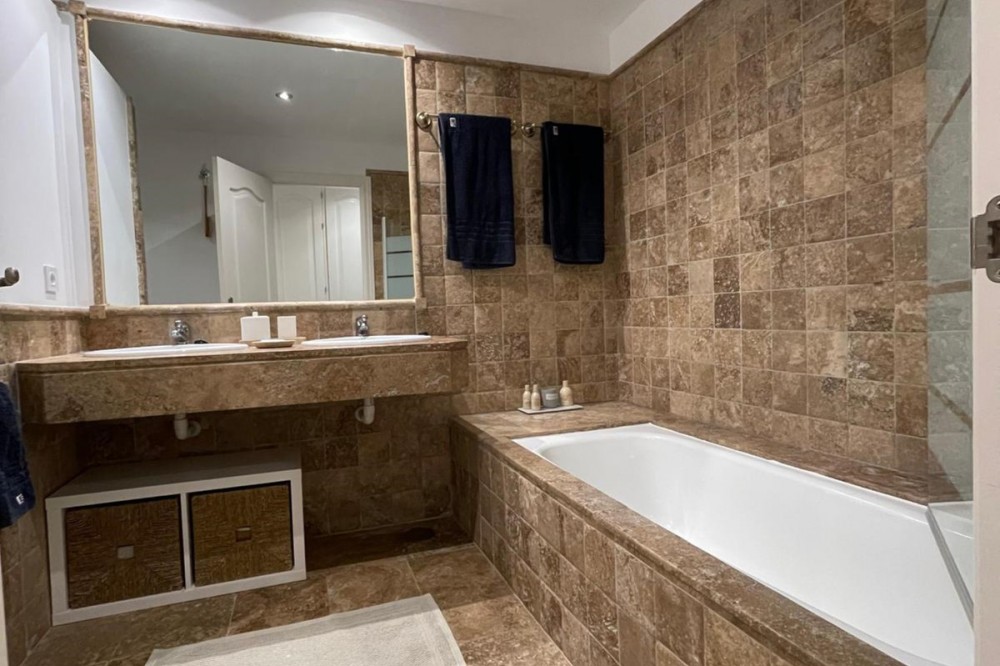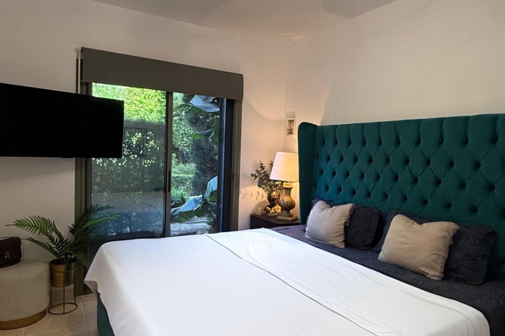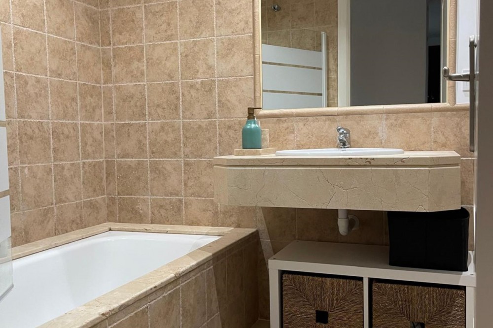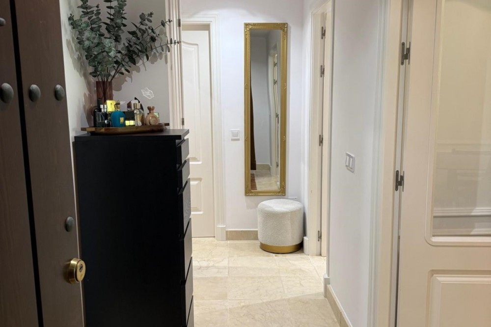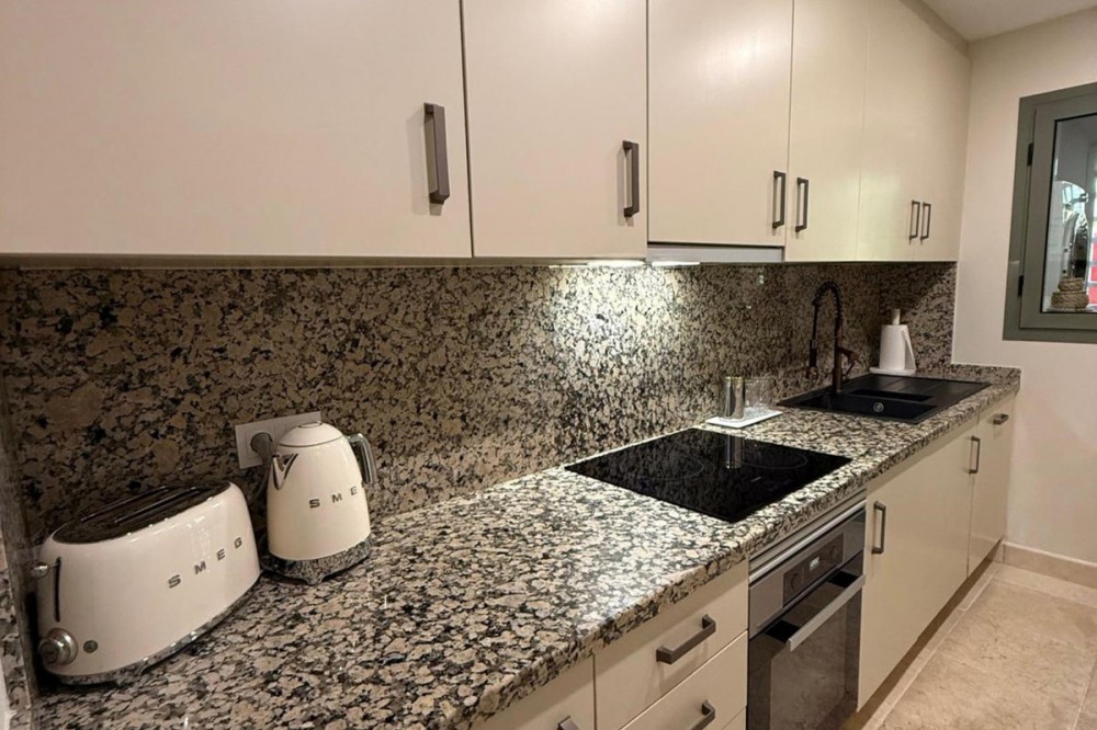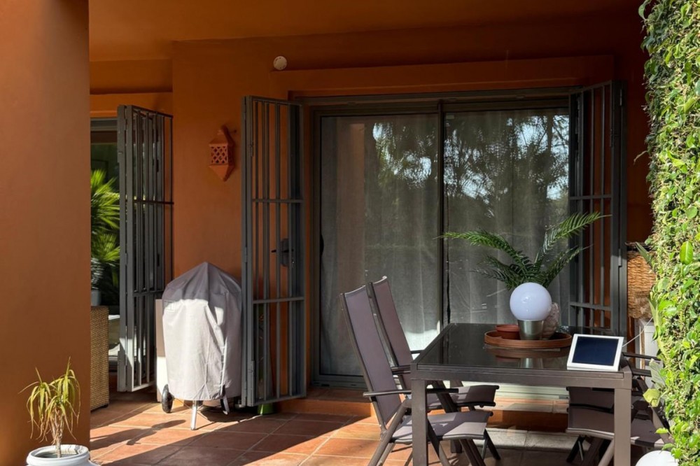 • Presenting an elegant, recently built apartment located in the prestigious Benatalaya development, in the eastern area of Estepona, Málaga. Boasting a privileged frontline golf location and surrounded by all necessary amenities, this property stands out for its comfort and excellent connectivity to public transport as well as the main commercial, educational, and leisure areas of the city. The apartment, with a built area of 140 m² (99 m² of interior space and 41 m² of a spacious private terrace), offers 2 bedrooms and 2 full bathrooms. The interior is characterized by its brightness and functional layout, featuring a spacious living room, fully equipped kitchen, built-in wardrobes, and high-quality finishes such as double-glazed windows and electric shutters. Residents enjoy an array of extraordinary amenities within a gated and secure community, including outdoor and indoor communal swimming pools, gym, sauna, jacuzzi, mature landscaped gardens, and a nearby children's playground. The entrance is equipped with a concierge, elevator, and adapted access, as well as communal garage and storage room. Security is ensured through 24-hour surveillance and assistance, as well as an access control system. This property represents an excellent opportunity for those seeking a high quality of life next to the golf course, surrounded by well-maintained gardens and a tranquil atmosphere, without sacrificing proximity to restaurants, schools, and shops. Its excellent condition, golf and garden views, and location close to all amenities make this apartment an ideal option both as a permanent residence and as an investment.