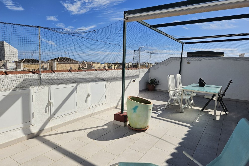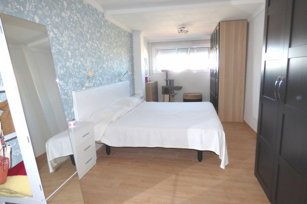 - Fantastic Location in the Heart of Estepona! Less than a 10-minute stroll to the beautiful beach, seafront promenade, and the charming historical Old Town of Estepona, this spacious duplex penthouse offers the very best of town living with shops, restaurants, and all amenities right on your doorstep. Situated on the 5th floor of a well-kept building with a lift, this home boasts an impressive 55m² private terrace with open views across the rooftops of Estepona towards the mountains, plus glimpses of the sea. The terrace is the perfect space for dining, entertaining, BBQs, or simply soaking up the sun. The property is set within a friendly, well-maintained community featuring a pretty garden and a large swimming pool, with very reasonable community fees of just €75 per month. Inside, the penthouse is generous in size and thoughtfully laid out: On the main floor you’ll find a spacious kitchen with room for a dining table, a guest WC, a cozy living room, an enclosed terrace currently used as an office/fourth bedroom, and access to the large open terrace. Upstairs, the accommodation includes a large principal bedroom, two further bedrooms, and two bathrooms. Additional highlights include ample storage space and an enclosed private parking space included in the price. The property is presented in good condition and would benefit from some updating, offering excellent potential to personalise and increase its value. Spacious penthouses in such a prime location are rarely available at this price – this is a fantastic opportunity not to be missed!