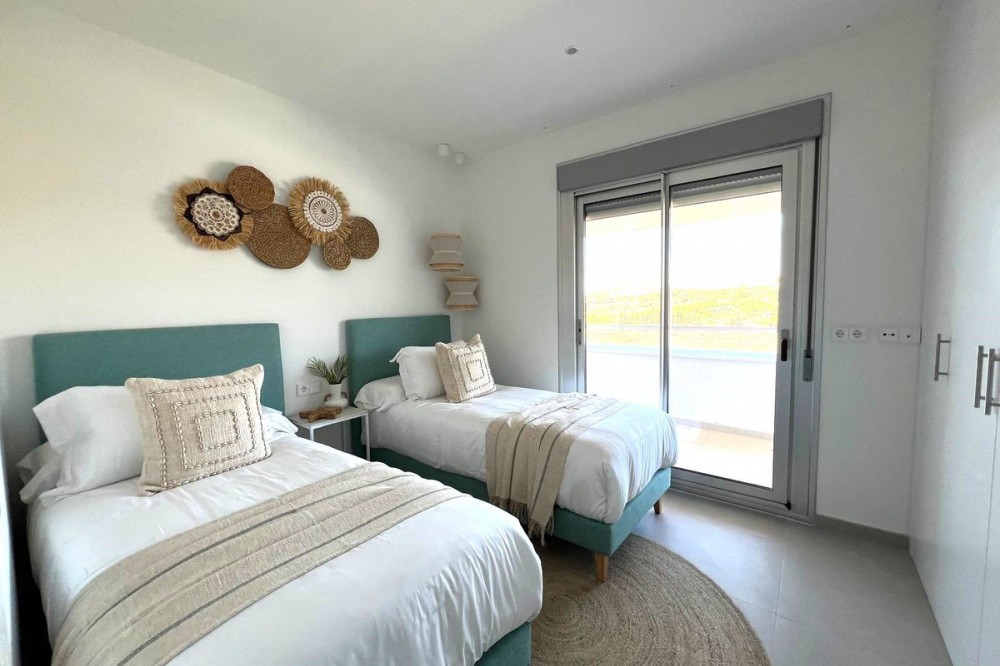 - Stunning Modern Apartment with Spacious Terrace – New Golden Mile Price: €485.000, Location: Cancelada, Estepona IMAGES OF SHOWFLAT IN THE SAME PROJECT Discover the perfect blend of modern design, comfort, and a prime location. This contemporary apartment, situated in one of the most sought-after areas of the New Golden Mile, offers a luxury lifestyle within walking distance of the charming village of Cancelada and just minutes from the Mediterranean beaches. Key Features Bright & Spacious: Boasting a generous internal living space of 90 m², the open-plan layout is designed to maximize light, featuring floor-to-ceiling windows that create a seamless flow between indoors and outdoors. Outdoor Living: Enjoy the Mediterranean sun on the large 26.7 m² private terrace. This space serves as a perfect extension of the living area, ideal for al fresco dining or lounging. Modern Kitchen: A fully equipped, sleek kitchen with high-quality appliances, perfectly integrated into the main living space. Bedrooms: 3 well-proportioned bedrooms with fitted wardrobes. The master suite features a stylish en-suite bathroom. Extras: Equipped with hot and cold air conditioning, premium flooring, and includes a private parking space and storage unit. Complex Amenities The property is located within an exclusive, gated community known for its excellent facilities: Beautifully landscaped tropical gardens. Large communal swimming pool with sunbathing areas. Located in a secure, quiet, and well-maintained environment. Location Positioned between Marbella and Estepona, this property offers the best of both worlds. You are within walking distance of local amenities including supermarkets, pharmacies, and top-rated restaurants in Cancelada. Some of the Costa del Sol's finest golf courses and famous beach clubs are just a short drive away. An ideal property for permanent living, a luxury holiday home, or a solid investment with high rental potential.