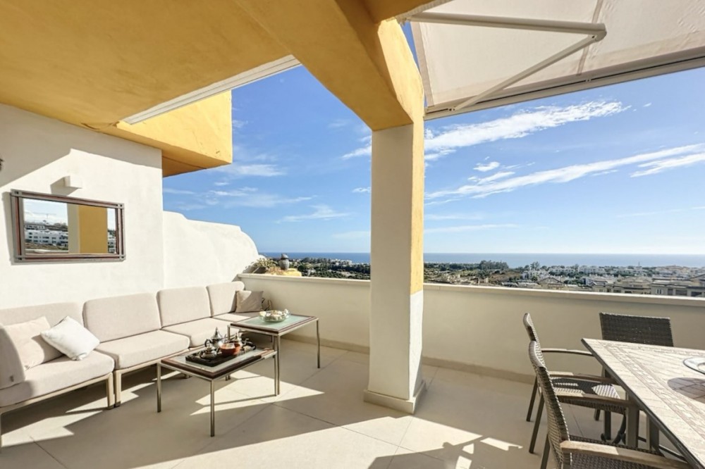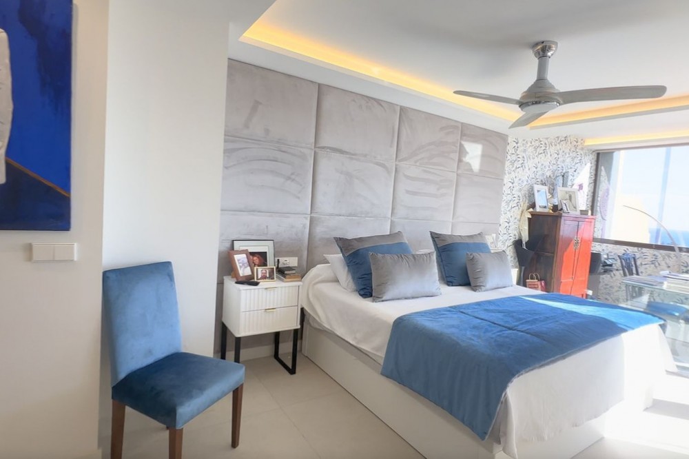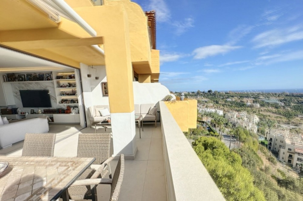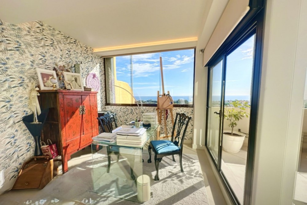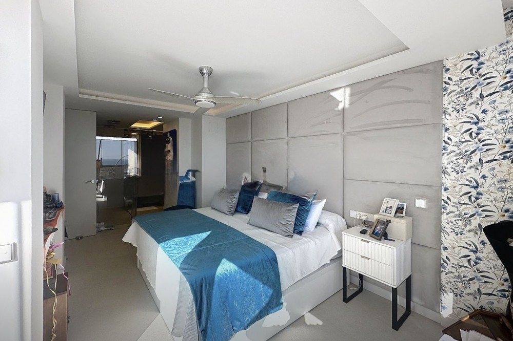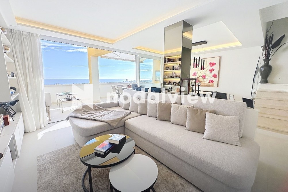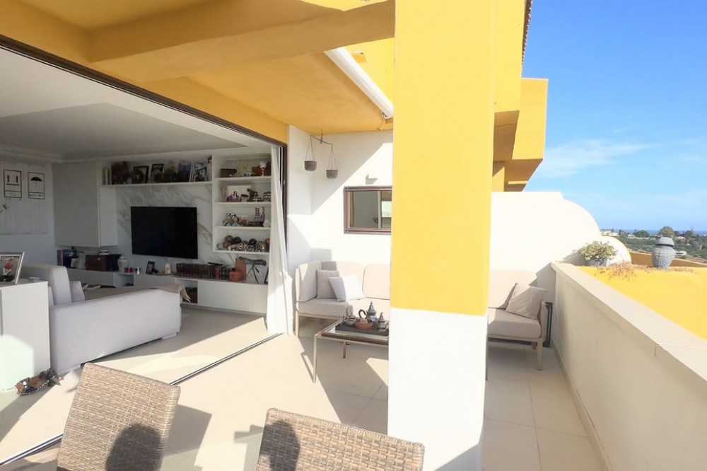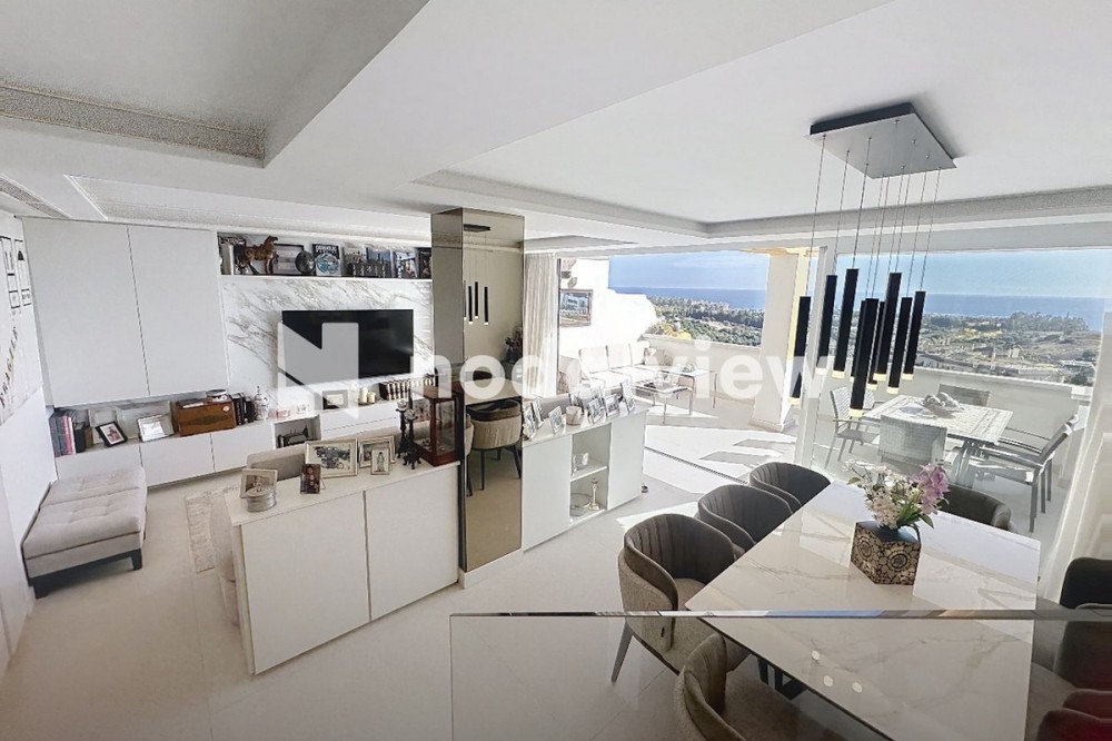 • This exceptional triplex penthouse stands out as one of the most unique and meticulously designed properties in the Selwo area of Estepona. Its current owners, **renowned interior designers**, carried out a complete **bespoke, full-scale renovation**, originally conceived for their own personal use. This is reflected in the selection of top-quality materials, custom finishes, contemporary aesthetics, and an exceptional attention to detail throughout the residence. Distributed across **three floors**, the property can be accessed either via wide, elegant, and ergonomic internal stairs or through a **private lift inside the home**—a rare luxury even among high-end properties. Located in a gated community surrounded by nature, the penthouse occupies a privileged elevated position offering **uninterrupted panoramic views of the Mediterranean Sea**—and on clear days, the vistas extend breathtakingly all the way to the **African coastline**, making every sunrise and sunset truly spectacular. **Interiors Designed with Precision and Modern Technology** The home showcases a completely redesigned interior with clean lines, natural textures, and expertly planned lighting. The entire property features **integrated LED lighting in walls and ceilings**, creating warm, sophisticated ambiances that enhance every space. All three bedrooms are spacious and filled with natural light, and each is equipped with **electric shutters**, providing comfort, privacy, and full control over brightness. Two of the bedrooms include beautifully redesigned **en-suite bathrooms**. The master suite features a generous spa-style bathroom, a custom-made **walk-in closet**, and an elegant **coworking area**, ideal for working from home with complete tranquility. The fully equipped kitchen, fitted with high-end integrated appliances, opens onto the contemporary open-plan living and dining area. This space flows seamlessly to the main terrace, maximizing the sense of openness. Additionally, the property includes an advanced **water filtration and softening system**, ensuring high-quality water throughout the entire home. **Terraces & Outdoor Spaces That Elevate the Living Experience** The **main terrace**, spacious and perfectly south-facing, features a **large electric parasol**, allowing you to adjust the shade effortlessly. It is ideal for enjoying breakfast with sea views or dining outdoors while taking advantage of the Costa del Sol’s exceptional climate. On the top floor, the property reveals a stunning **private solarium**, a true oasis designed for relaxation and entertainment. This extraordinary space includes: * A **chill-out area** with custom outdoor furniture * A zone created specifically for **special star-lit nights** * A beautifully integrated **barbecue area** * Breathtaking views over the Mediterranean and the mountains This solarium transforms the upper floor into the perfect retreat for gatherings with friends, intimate celebrations, or simply unwinding under the sun or stars. **Community & Surroundings** The gated residential community offers landscaped gardens, several swimming pools for adults and children, security, and a peaceful atmosphere surrounded by nature—while still being close to essential services, beaches, and main transport connections. The property includes **a private parking space**, and an additional **second private parking space**, adding substantial value and convenience.