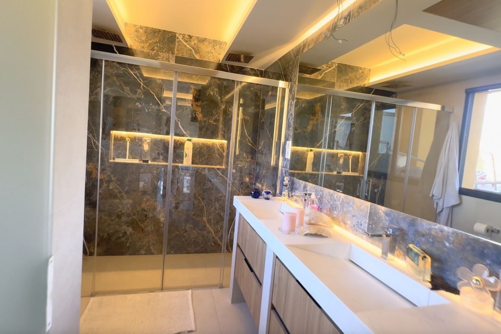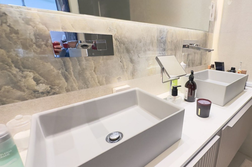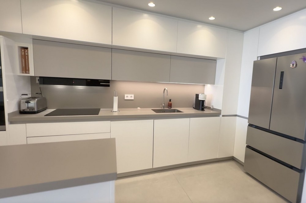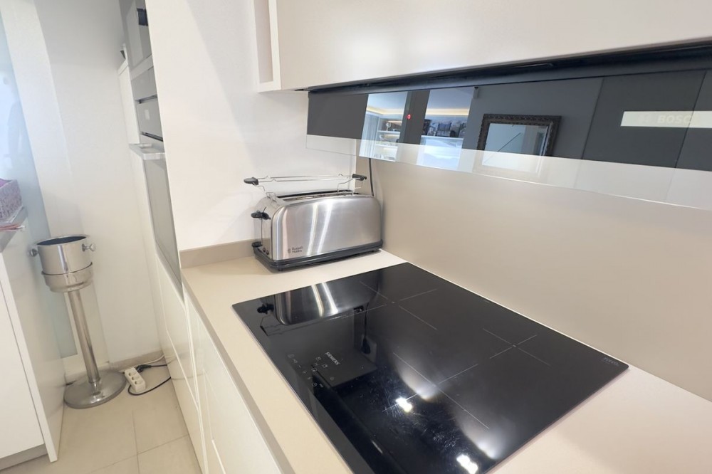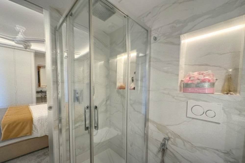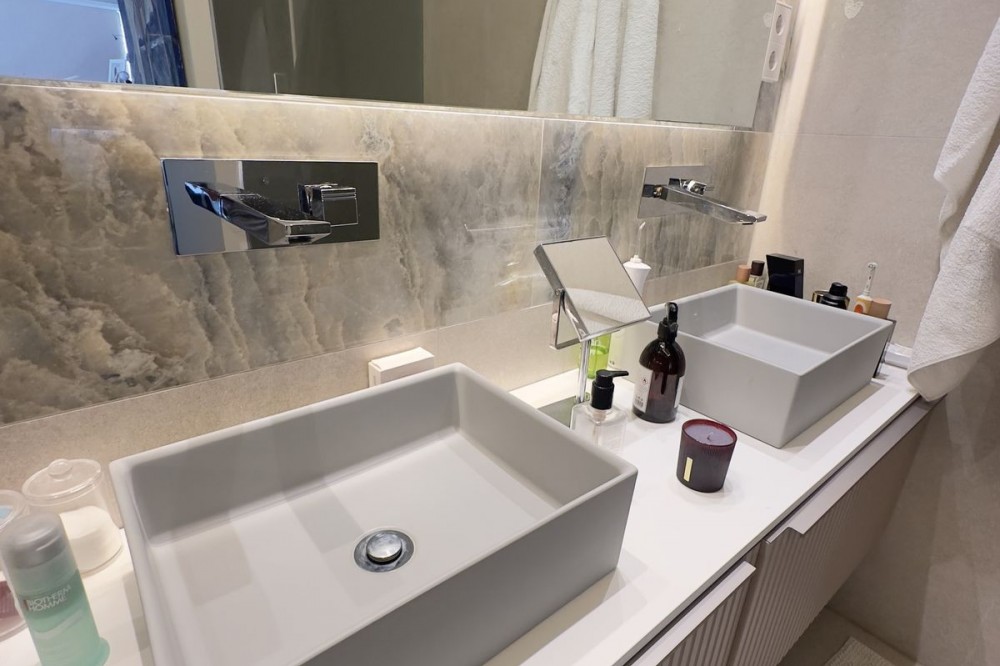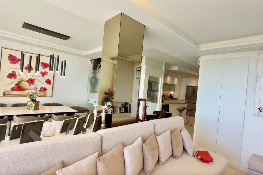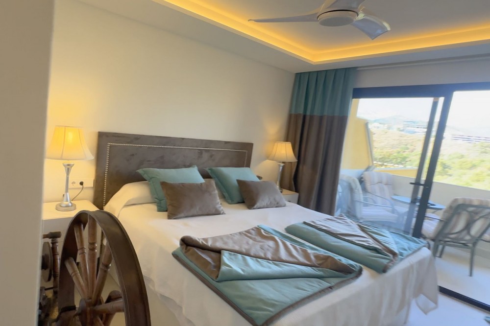 • This exceptional triplex penthouse stands out as one of the most unique and meticulously designed properties in the Selwo area of Estepona. Its current owners, **renowned interior designers**, carried out a complete **bespoke, full-scale renovation**, originally conceived for their own personal use. This is reflected in the selection of top-quality materials, custom finishes, contemporary aesthetics, and an exceptional attention to detail throughout the residence. Distributed across **three floors**, the property can be accessed either via wide, elegant, and ergonomic internal stairs or through a **private lift inside the home**—a rare luxury even among high-end properties. Located in a gated community surrounded by nature, the penthouse occupies a privileged elevated position offering **uninterrupted panoramic views of the Mediterranean Sea**—and on clear days, the vistas extend breathtakingly all the way to the **African coastline**, making every sunrise and sunset truly spectacular. **Interiors Designed with Precision and Modern Technology** The home showcases a completely redesigned interior with clean lines, natural textures, and expertly planned lighting. The entire property features **integrated LED lighting in walls and ceilings**, creating warm, sophisticated ambiances that enhance every space. All three bedrooms are spacious and filled with natural light, and each is equipped with **electric shutters**, providing comfort, privacy, and full control over brightness. Two of the bedrooms include beautifully redesigned **en-suite bathrooms**. The master suite features a generous spa-style bathroom, a custom-made **walk-in closet**, and an elegant **coworking area**, ideal for working from home with complete tranquility. The fully equipped kitchen, fitted with high-end integrated appliances, opens onto the contemporary open-plan living and dining area. This space flows seamlessly to the main terrace, maximizing the sense of openness. Additionally, the property includes an advanced **water filtration and softening system**, ensuring high-quality water throughout the entire home. **Terraces & Outdoor Spaces That Elevate the Living Experience** The **main terrace**, spacious and perfectly south-facing, features a **large electric parasol**, allowing you to adjust the shade effortlessly. It is ideal for enjoying breakfast with sea views or dining outdoors while taking advantage of the Costa del Sol’s exceptional climate. On the top floor, the property reveals a stunning **private solarium**, a true oasis designed for relaxation and entertainment. This extraordinary space includes: * A **chill-out area** with custom outdoor furniture * A zone created specifically for **special star-lit nights** * A beautifully integrated **barbecue area** * Breathtaking views over the Mediterranean and the mountains This solarium transforms the upper floor into the perfect retreat for gatherings with friends, intimate celebrations, or simply unwinding under the sun or stars. **Community & Surroundings** The gated residential community offers landscaped gardens, several swimming pools for adults and children, security, and a peaceful atmosphere surrounded by nature—while still being close to essential services, beaches, and main transport connections. The property includes **a private parking space**, and an additional **second private parking space**, adding substantial value and convenience.