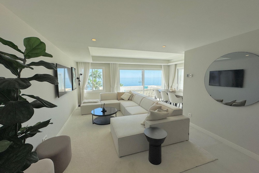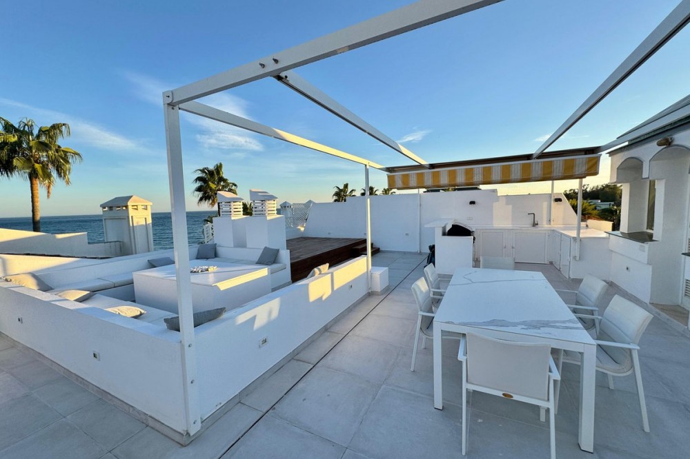 - Beachfront Duplex Penthouse in Dominion Beach This exclusive frontline duplex penthouse is located within the prestigious Dominion Beach development, one of the most sought-after residential areas in Estepona. Positioned just 50 metres from the sea, the apartment offers a unique setting with immediate proximity to the beach and an exceptional Mediterranean lifestyle. The property features 143 sqm built, distributed into four spacious bedrooms and three bathrooms, providing a comfortable and functional layout ideal for permanent living, a holiday residence or a high-potential investment. Its south-facing orientation ensures abundant natural light throughout the day. A key highlight of the home is its outstanding outdoor space. It offers two private terraces of approximately 35 sqm and 110 sqm, perfect for outdoor dining, entertaining or simply enjoying the breathtaking panoramic sea views. The apartment has been renovated and includes air conditioning, fitted wardrobes, a storage room and lift access. The gated community benefits from a communal swimming pool and a well-maintained beachfront environment. This is a rare opportunity to acquire a spacious and bright property with open sea views in a prime Costa del Sol location.