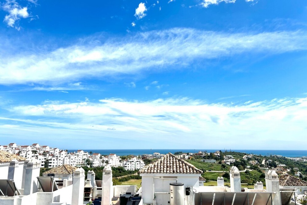 - Duplex Penthouse in Estepona - Sea views - Tourist License - just €299,000!! Exceptional value property in Estepona, we proudly present this 2 bedroom, 2 bathroom penthouse duplex, at the ever popular Valle Romano Golf Resort. Extremely well positioned, with elevated south facing views to the golf course and coast. Conveniently located, just a 5-minute drive from the center of Estepona, with an abundance of fantastic restaurants, bars and other amenities to choose from. This property offers space in abundance, distributed over 3 floors as follows; Upon entering, you are welcomed by a bright and spacious dining and living area, which opens onto a large terrace - ideal for outdoor dining and relaxation. This level also features a fully equipped kitchen, a utility terrace, and a guest toilet. A marble staircase leads down to the bedrooms, both spacious with private terraces and a modern shared bathroom. The showpiece of the property is the rooftop solarium, with amazing views to the golf course and sea in the distance. With 360 degree orientation, owners can enjoy sunshine and views from morning until late into the evening, as the sun sets over the mountains in the west. Ideal for those looking to combine leisure with investment, the property has a valid tourist l license, enabling owners to rent out short term when not in use. The community offers 2 communal swimming pools, an underground parking space and easy access to golf. Don't hesitate to contact us for a viewing!