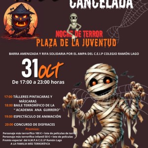 Het feest vindt plaats op de gemeentelijke stand en omvat springkussens, een kostuumwedstrijd, een "Pasaje del Terror" (Doortocht van de Terreur) en een concert van "Malpaso". In de wijk Cancelada wordt ook een Halloweenfeest gehouden van 17:00 tot 23:00 uur met optredens en kostuumwedstrijden op het centrale Plaza de la Juventud.