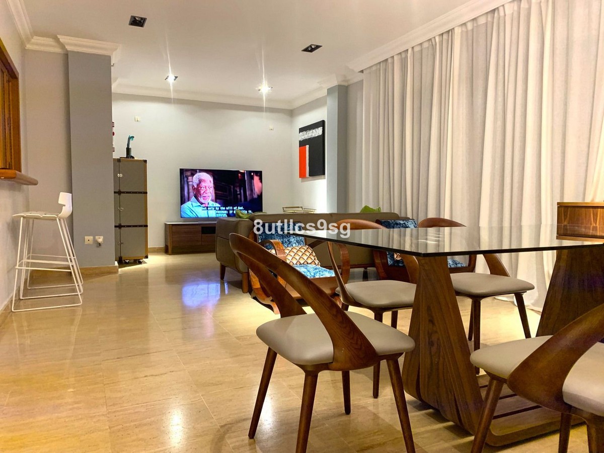 - 2 bedroom apartment located in the hotel complex called Paraiso Beach, located in the Paraiso Barronal Urbanization, Cancelada, between Marbella and Estepona, Malaga The apartment has 2 bedrooms and two bathrooms, the main one en suite, with a total area of 141m2, with modern decoration and high-quality furniture. It is bright, with light pastel colors, comfortable and equipped with all the comforts that you should offer in this category. The urbanization is excellent and it has spa and GIM facilities, as well as community pools and beautiful gardens. It is located just 5 minutes walk from the beach and 5 minutes by night from San Pedro Alcántara and Puerto Banús.