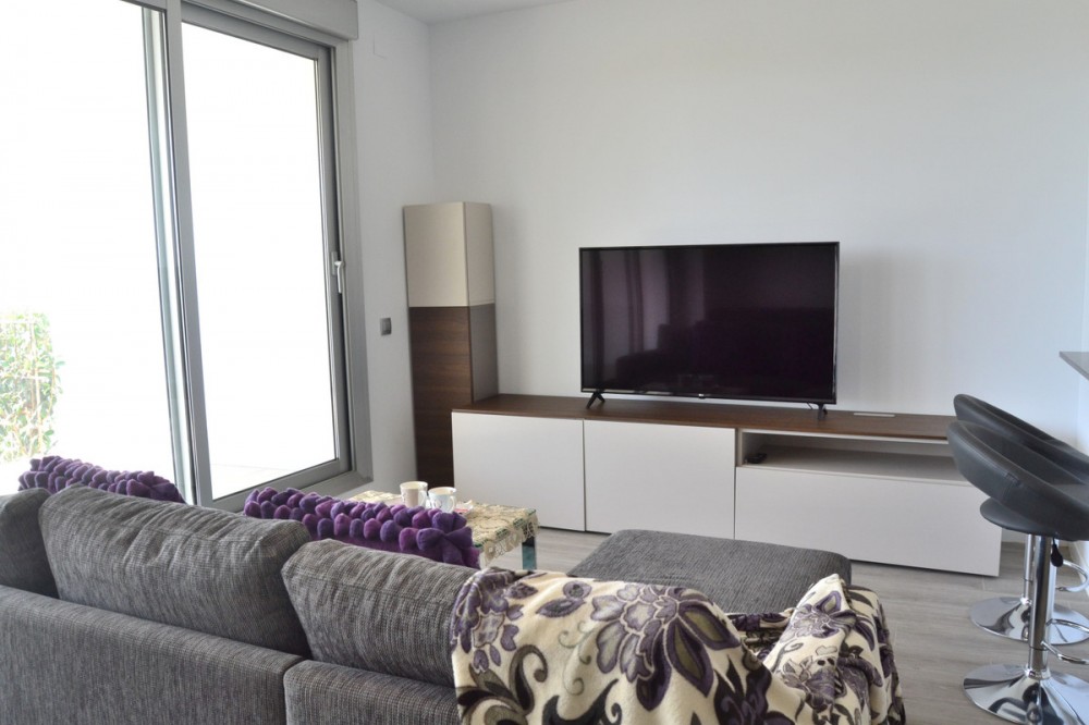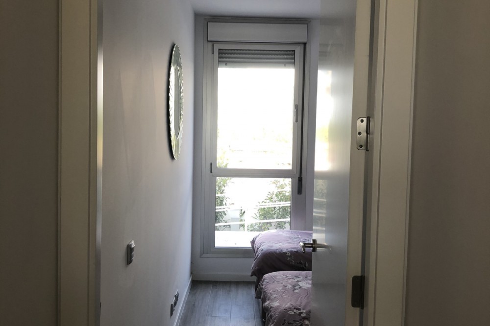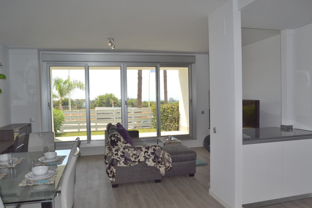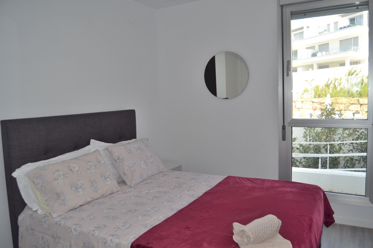- Modern apartment located in the charming village of Cancelada in Estepona. The garden apartment consists of a bright lounge and dining area have access to a private wouth facing terrace of 18 sqm and a garden of 30 sqm. The open plan kitchen is fully equipped with top range appliances. The 2 bedrooms have en-suite bathrooms and fitted wardrobes. The complex is gated with security services and concierge and has 2 swimming pools, kids pool and play area. Few minutes walking to shops, restaurants and services and only 5 minutes by car to the beach and Los Flamingos golf course.