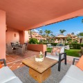 - Ground Floor Apartment for sale in Cabo Bermejo, Estepona with 3 bedrooms, 2 bathrooms, 1 on suite bathroom, 2 toilets and with orientation south/east, with communal swimming pool, private garage and communal garden. Regarding property dimensions, it has 130 m² built and 40 m² terrace. Has the following facilities front line beach, transport near, air conditioning, fully fitted kitchen, marble floors, guest room, storage room, dining room, security service 24h, guest toilet, private terrace, kitchen equipped, living room, underfloor heating (throughout), fitted wardrobes, gated community, lift, garden view, pool view, beach side, underfloor heating (bathrooms), close to sea / beach, close to golf, glass doors, recently renovated / refurbished, close to shops, close to town and pets allowed.