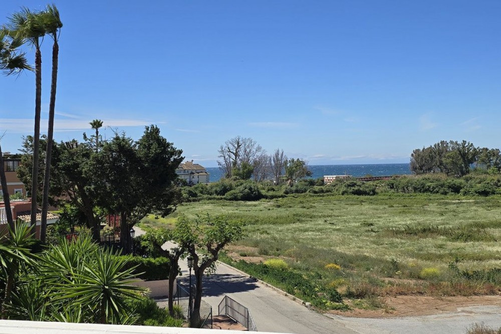 - Park Beach Penthouse with Roof terrace € 499,000 REDUCED due to road noise - Large spacious apartment, excellent rentals. One of the few residential property complexes with a beachside location and an immense Garden, large enough to be referred to as a Park. with two Lagoon pools and direct access to the beach, only metres away. This first-floor duplex penthouse offers beautiful sea views over open fields. It is a top-quality, spacious apartment with marble throughout. An elegant entrance leads to an open lounge and dining area, complete with a fireplace and high ceilings. The living room opens onto a large terrace with stunning sea views. Both bedrooms are spacious enough for super king beds or two singles, along with bedroom furniture. The bedrooms feature fitted wardrobes; one bedroom offers garden views, while the other boasts superb sea views from the bed. There are two bathrooms, both with high-quality fittings, including Grohe taps. The en-suite bathroom features twin sinks, a bath with a shower, a WC, and a bidet. The guest bathroom includes a shower, a sink, and a WC. Both bathrooms have windows, marble throughout, and underfloor heating. The kitchen is fully fitted with a fridge freezer, oven, hob, extractor fan, and dishwasher. It includes a separate laundry area with a boiler and extra cupboard space. The kitchen is spacious enough to accommodate a small dining table and has been converted into an extra bedroom in some of the apartments in this complex. Additionally, some units have opened the service hatch to create an American-style open kitchen. The entire apartment is covered by an upper solarium with flower boxes, a shower, a sink, and an area that can be easily converted into an outdoor barbecue/kitchen. The solarium is equipped with seating and a pergola, is completely tiled, and offers exceptional views of the sea and mountains.