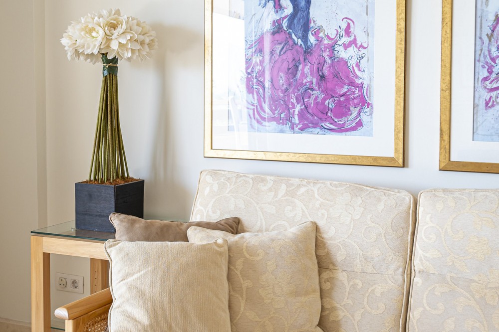 - Located in the sought-after Paraiso Barronal area, this stylish 2-bedroom, 2-bathroom apartment offers modern comfort in a serene setting. Spanning 134 m², it features a 24 m² enclosed terrace with a summer kitchen, wine cooler, and additional refrigerator, perfect for year-round relaxation and entertaining. Fully furnished and equipped with high-end Siemens appliances, a Bosch washing machine and dryer, and ducted air conditioning, this home ensures both elegance and convenience. One of the bathrooms has been recently renovated, adding a contemporary touch. Set within a gated community with a swimming pool and landscaped gardens, the apartment also includes two underground parking spaces and a 6 m² storage room. With breathtaking sea and La Concha mountain views, it is ideally located near shops, restaurants, and top golf courses. A fantastic opportunity for those seeking a refined home in Estepona. Contact us today for more details.