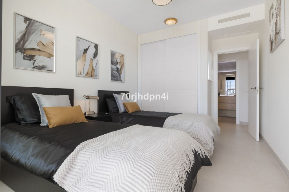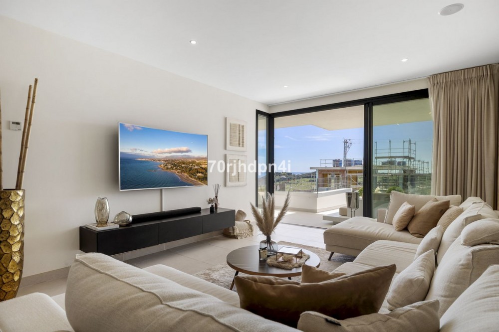 - Modern Apartment in Mirador del Golf, Estepona This stylish and modern apartment in the exclusive Mirador del Golf in Estepona West offers a unique opportunity for those seeking peace, nature, and a touch of luxury — just minutes from the beach and the charming old town of Estepona. The location is truly exceptional: right next to Estepona Golf, in a green and tranquil setting with panoramic views over the valley and the sea. Yet, in just 5 minutes, you can reach the lively town centre of Estepona, with its pedestrian-friendly streets, cosy chiringuitos, golf clubs, international schools, boutique shops, and gourmet restaurants. Puerto Banús is only 20 minutes away, Marbella just 30 minutes by car. The apartment is situated on the first floor of a recent 2022 building and is east-facing, with plenty of natural light thanks to its large floor-to-ceiling windows. The elegant open-plan living space features a fully equipped kitchen, a cosy sitting area, and direct access to a spacious covered terrace — ideal for enjoying the Mediterranean lifestyle to the fullest. The master bedroom includes an en-suite bathroom, and both bedrooms open onto the terrace — perfect for catching the fresh morning breeze or sipping an aperitif at sunset. The urbanisation itself is safe and well-maintained, offering an elevated communal swimming pool with spectacular views, a fully equipped gym, landscaped gardens, and underground parking. An ideal opportunity for anyone looking for a second home, an investment property, or a carefree holiday apartment under the sun.