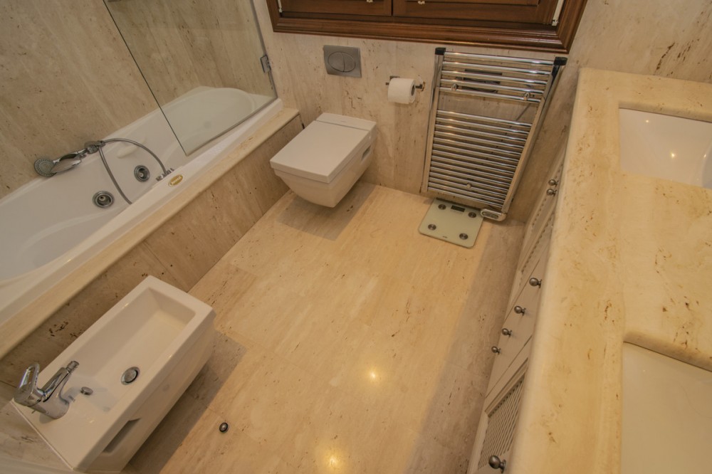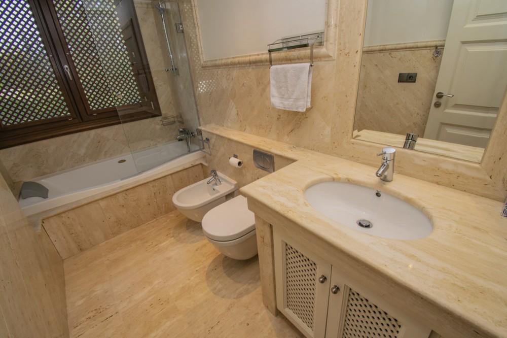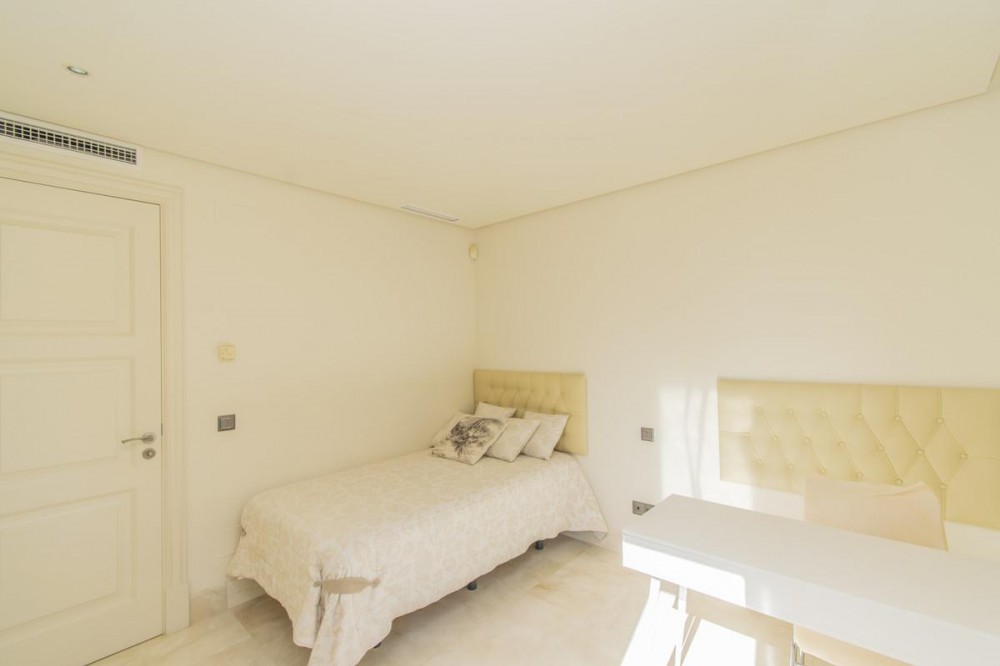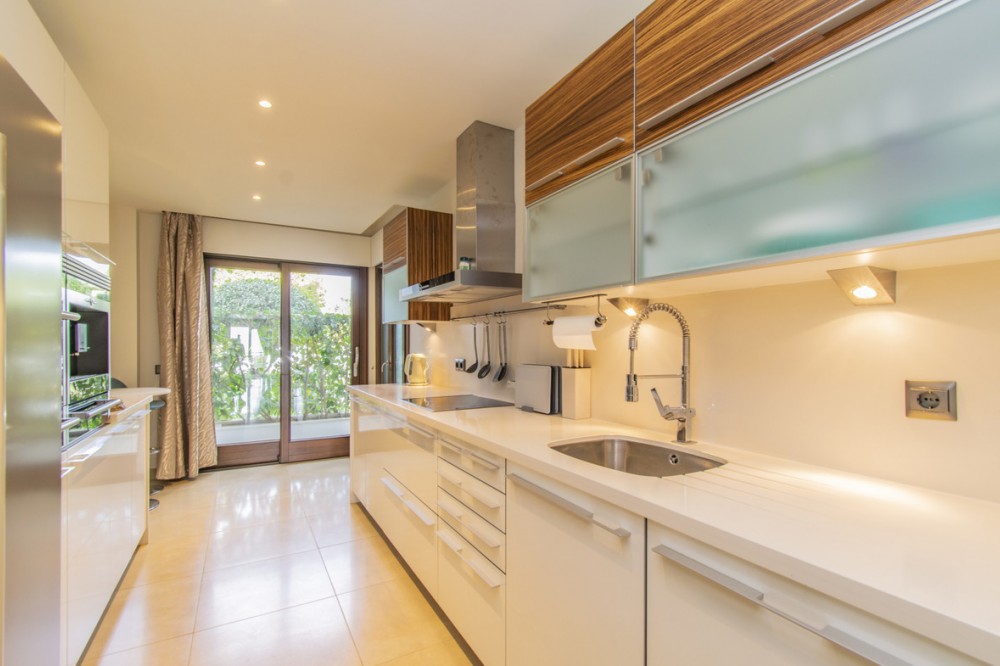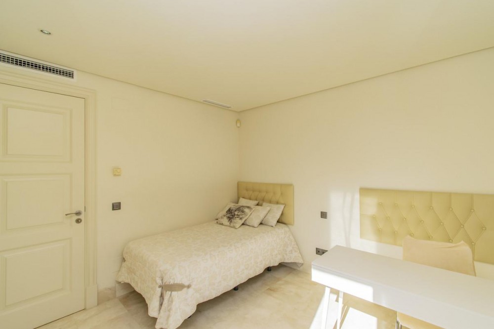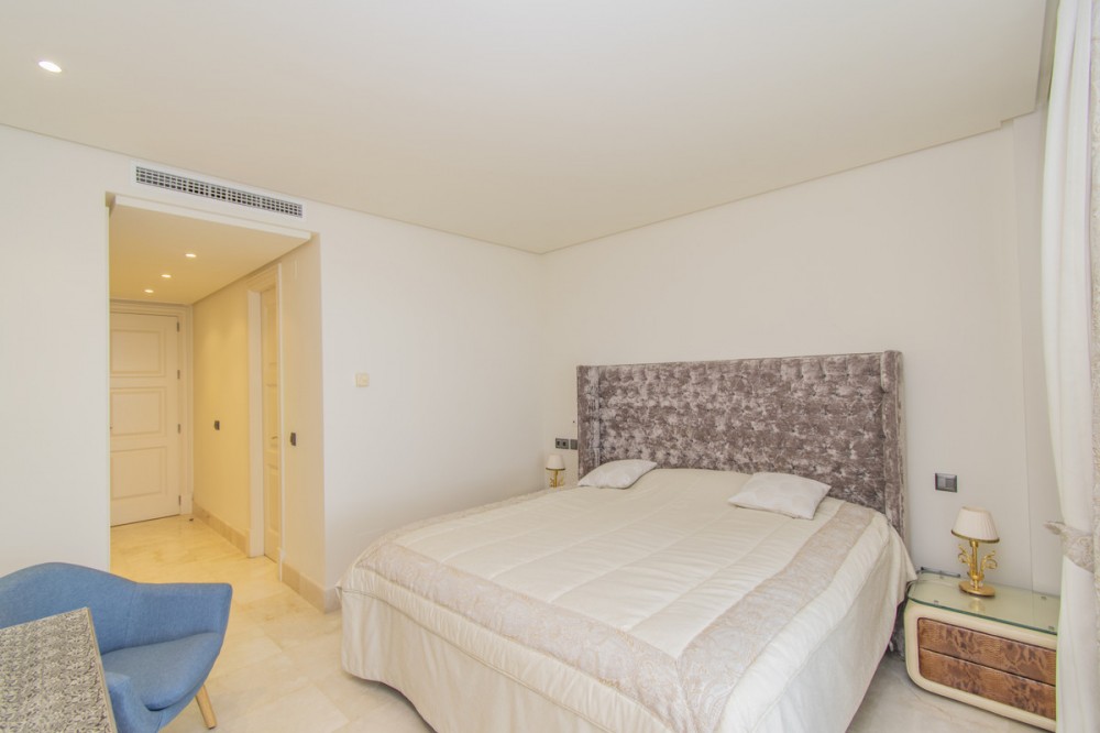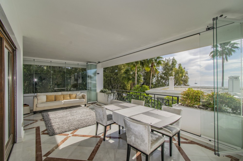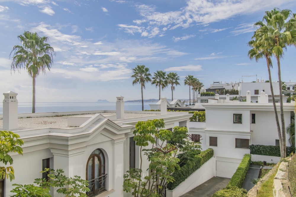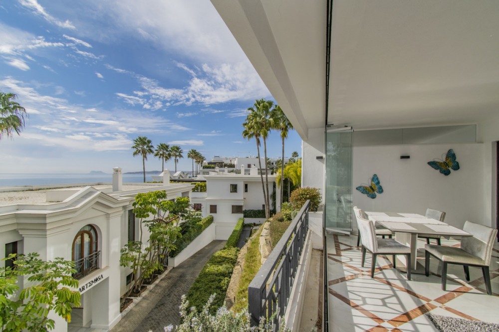 - LUXURY PROPERTY ON THE FIRST LINE OF THE BEACH IN ESTEPONA Elegant and luxurious apartment, on the beachfront, a few minutes from the Port of Estepona close to all kinds of services. Ground floor apartment with sea views consisting of a total of three bedrooms, three bathrooms, living room with separate kitchen and terrace with sea views. Includes garage space. Established within a luxurious urbanization with 24 hour security, direct access to the beach, swimming pool and gym.