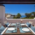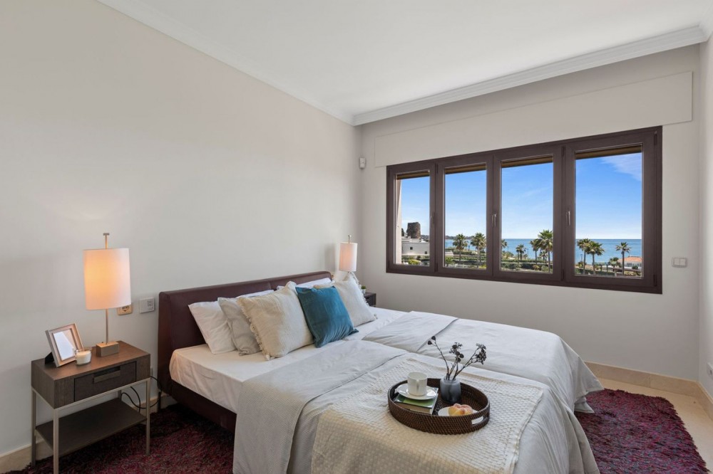- Set within the prestigious beachfront community of Bahía del Velerín, along the New Golden Mile between Marbella and Estepona, this stunning duplex penthouse captures the essence of Mediterranean living: space, style, and endless views. Spread over two levels, the property features a spacious living room, a separate dining area, fully fitted kitchen, utility room, and a guest toilet. All 3 bedrooms offer generous wardrobes and en-suite bathrooms for maximum comfort and privacy. What truly sets this property apart are its three private terraces and a 60 m² rooftop solarium complete with summer kitchen and barbecue, the perfect setting to enjoy life outdoors as part of your daily routine. Here, it’s not just about having sea views, it’s about having the sea as your closest neighbor. The gated community boasts 24-hour security and concierge service, lush tropical gardens, and a spectacular resort-style swimming pool. Residents also enjoy direct access to the beach and the renowned Velerín beach bar&restaurant, one of the Costa del Sol’s top-rated chiringuitos, famous for its fresh seafood, traditional Andalusian dishes, and relaxed atmosphere. The price includes two underground parking spaces and a storage room. A home for those who don’t dream of sailing, but of waking up each day on their own ship, anchored in the sand.