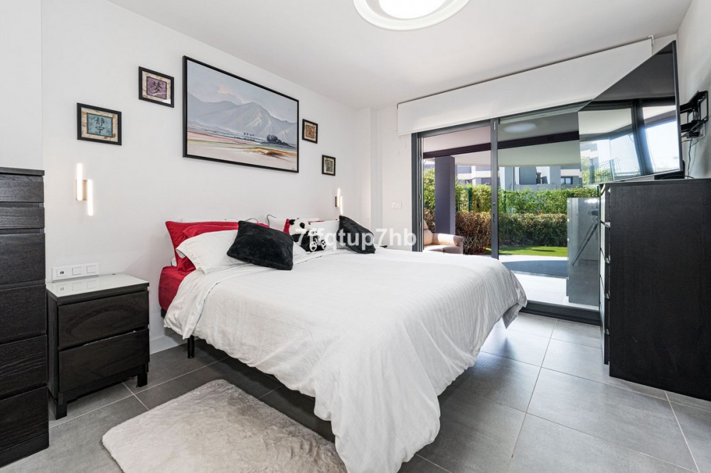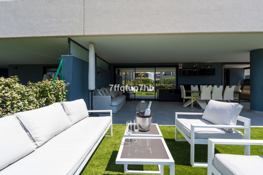 - We are delighted to present this beautiful corner ground floor apartment, nestled in Phase II of the exclusive Oasis 325 development—named for the 325 days of sunshine Estepona enjoys each year. This 3-bedroom apartment features an open-plan design, seamlessly integrating a modern, fully equipped kitchen with the living area. The space opens onto a spectacular south-facing terrace and a private 80 m² garden, perfect for basking in the endless sunlight that characterizes the Costa del Sol. Two of the three bedrooms boast stylish en-suite bathrooms. The master suite offers direct access to a private terrace, fully enclosed with glass curtains, providing the perfect spot to relax in total privacy and enjoy the sunrise without leaving your room. Every detail of this apartment has been thoughtfully designed to combine functionality and style. The kitchen has been expanded with extra cabinetry and a perfectly integrated XL fridge. Additional conveniences include a separate laundry room, an independent storage room, and one underground parking space—making this home as practical as it is luxurious. All bedrooms are equipped with fully fitted built-in wardrobes and electric blinds for maximum comfort. Enhance your lifestyle with the resort-style amenities offered by this residential complex: lush gardens, outdoor swimming pools, a fully equipped gym, a luxurious spa with hammam and sauna, as well as a yoga and fitness studio—allowing you to relax or maintain an active lifestyle without leaving home. Additionally, there is a complete coworking space with a business center to meet all your professional needs. Oasis 325 enjoys a privileged location on the renowned New Golden Mile, just 10 minutes from Estepona and 15 minutes from Marbella. It is adjacent to La Resina Golf Course, 2 km from Atlas American School, and close to the popular Selwo Safari Park. Only 4 km from the beach, you can enjoy elegant beach clubs and gourmet restaurants nearby. Don’t miss the opportunity to experience everything this property has to offer. Delivered fully furnished and ready to move in!