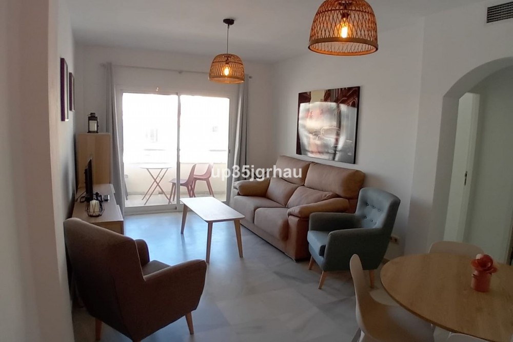 - 2 bedroom apartment in a beachfront building in the center of Estepona, on the new pedestrian promenade. It has 2 bedrooms, 1 bathroom, living room, kitchen, laundry and a terrace with views of the mountains. Unbeatable location, it is perfect for vacation rentals or living in the center of Estepona right next to the beach. Tourist license in place.
