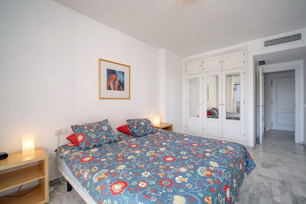 - LOCATION - LOCATION - LOCATION In the best located building in Estepona, right by the sea and at the beginning of the promenade lies apartment building Jacaranda. There is now a unique opportunity to buy an apartment in this building where there is hardly ever anything for sale. The Carrefour, a large supermarket is next door. At the bottom of the building, on the promenade are 3 bars and an excellent fish restaurant where you can enjoy a drink, a snack or meal in the sun until late in the afternoon. The distance to the centre of the village with its many restaurants, beach clubs, bars and cosy shops is 7-10 minutes' walk. The marina can be reached via the promenade a 40-minute walk away. This apartment has 1 very spacious bedroom and 1 bathroom with walk-in shower. The apartment has an area of 55 m2. Enough metres to create a 2nd bedroom through a simple renovation. The covered terrace is 22 m2 and faces south. The garden with swimming pool and separate children's pool is for the exclusive use of the residents. There is closed parking in front of the door. The building and apartment are wheelchair accessible. Lift access is available. The property comprises a living, dining room, an open-plan, small but well-equipped kitchen, 1 bedroom and 1 bathroom. Additional amenities include high-speed fibre-optic Wi-Fi and air conditioning (hot and cold).