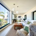 - An Exceptional Andalusian-Inspired Residence with Panoramic Mediterranean Views This apartment is located in incredible Mirador de Estepona Hill urbanisation, just 5 minutes from the center of Estepona, 10 minutes from the incredible beach and 23 minutes from the sunny Sant Pedro. This beautifully appointed apartment offers a spacious layout with three spacious bedrooms and two exquisite bathrooms, including a luxurious en-suite in the master bedroom. A thoughtful guest cloakroom with double vanities adds an extra layer of convenience and style. The spacious living area, originally 40 m², was partially reconfigured to create a custom dressing room, seamlessly integrated into the master bedroom for maximum comfort and privacy. The modern kitchen, equipped with the latest Neff appliances, boasts a minimalist aesthetic that combines clean lines with high-end functionality - perfect for both everyday living and entertaining. The crown jewel of the apartment is the stunning glazed terrace of almost 37 m², enclosed with frameless Lumon glass and fitted with discreet mosquito nets. From here you will enjoy spectacular panoramic views of the Mediterranean Sea. The property includes two private underground parking spaces and a secure storage unit. Every detail of this apartment has been carefully considered to the highest standards, including: • Cutting-edge Mitsubishi central air conditioning • Elegant Porcelanosa floors, bathrooms and sanitaryware • Contemporary fireplace • Premium Cortizo double glazing for thermal and acoustic insulation Located in a gated and secure complex with 24-hour surveillance, CCTV and concierge services, this prestigious development offers residents an unrivalled lifestyle. On-site amenities include: • Two gourmet restaurants • A welcoming community club • A fully equipped fitness centre • A professional tennis and paddle club • Lush, meticulously maintained tropical gardens Residents can also enjoy two infinity pools set against a stunning natural backdrop, offering the perfect haven of peace, privacy and prestige.