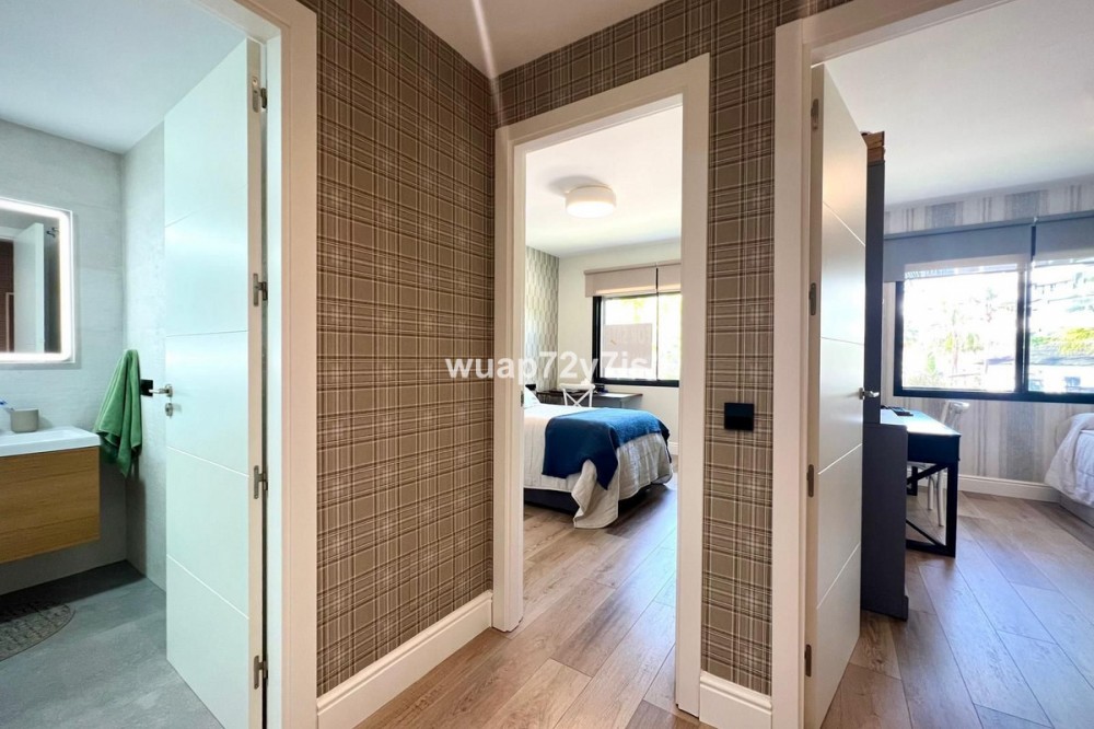 - An Exceptional Andalusian-Inspired Residence with Panoramic Mediterranean Views This apartment is located in incredible Mirador de Estepona Hill urbanisation, just 5 minutes from the center of Estepona, 10 minutes from the incredible beach and 23 minutes from the sunny Sant Pedro. This beautifully appointed apartment offers a spacious layout with three spacious bedrooms and two exquisite bathrooms, including a luxurious en-suite in the master bedroom. A thoughtful guest cloakroom with double vanities adds an extra layer of convenience and style. The spacious living area, originally 40 m², was partially reconfigured to create a custom dressing room, seamlessly integrated into the master bedroom for maximum comfort and privacy. The modern kitchen, equipped with the latest Neff appliances, boasts a minimalist aesthetic that combines clean lines with high-end functionality - perfect for both everyday living and entertaining. The crown jewel of the apartment is the stunning glazed terrace of almost 37 m², enclosed with frameless Lumon glass and fitted with discreet mosquito nets. From here you will enjoy spectacular panoramic views of the Mediterranean Sea. The property includes two private underground parking spaces and a secure storage unit. Every detail of this apartment has been carefully considered to the highest standards, including: • Cutting-edge Mitsubishi central air conditioning • Elegant Porcelanosa floors, bathrooms and sanitaryware • Contemporary fireplace • Premium Cortizo double glazing for thermal and acoustic insulation Located in a gated and secure complex with 24-hour surveillance, CCTV and concierge services, this prestigious development offers residents an unrivalled lifestyle. On-site amenities include: • Two gourmet restaurants • A welcoming community club • A fully equipped fitness centre • A professional tennis and paddle club • Lush, meticulously maintained tropical gardens Residents can also enjoy two infinity pools set against a stunning natural backdrop, offering the perfect haven of peace, privacy and prestige.