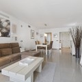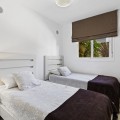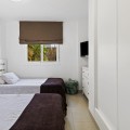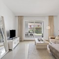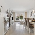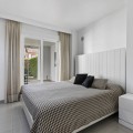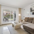 • Luxury two-bedroom apartment featuring a spacious living/dining room, fully equipped kitchen with separate utility area, and two bedrooms — one with an en-suite bathroom, the other with a family bathroom. Both bedrooms include built-in wardrobes. A highlight of the property is the large covered terrace with glass curtains, that leads out onto a wonderful private garden. This versatile space comfortably accommodates both seating and dining areas, making it a perfect second living space during the cooler months. This ground-floor apartment combines the generous dimensions of one of the larger units in the complex with the convenience of stair-free access, enhancing overall accessibility. Residents and guests can enjoy the beautiful Spanish climate in the impressive communal swimming pools, set within landscaped tropical gardens complete with sun-beds and a stylish beach bar. The resort offers 24-hour security, stunning communal areas, and a serviced *chiringuito* with a bar and restaurant at the heart of the development. Cortijo del Mar is within easy walking distance of local shops, restaurants, and the nearby clubhouse, which features an indoor pool, gym, tennis courts, golf course, and kids' club.