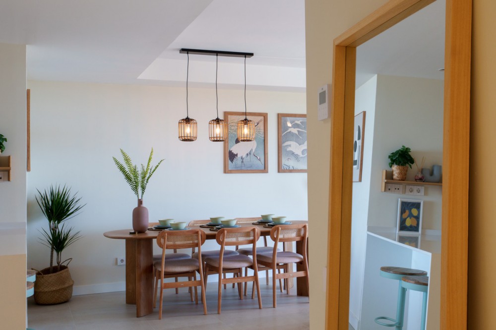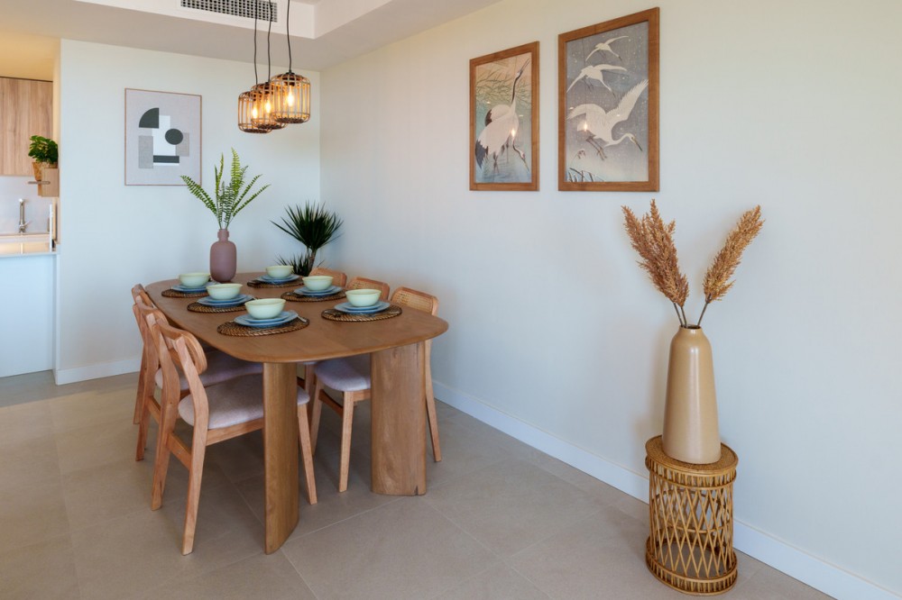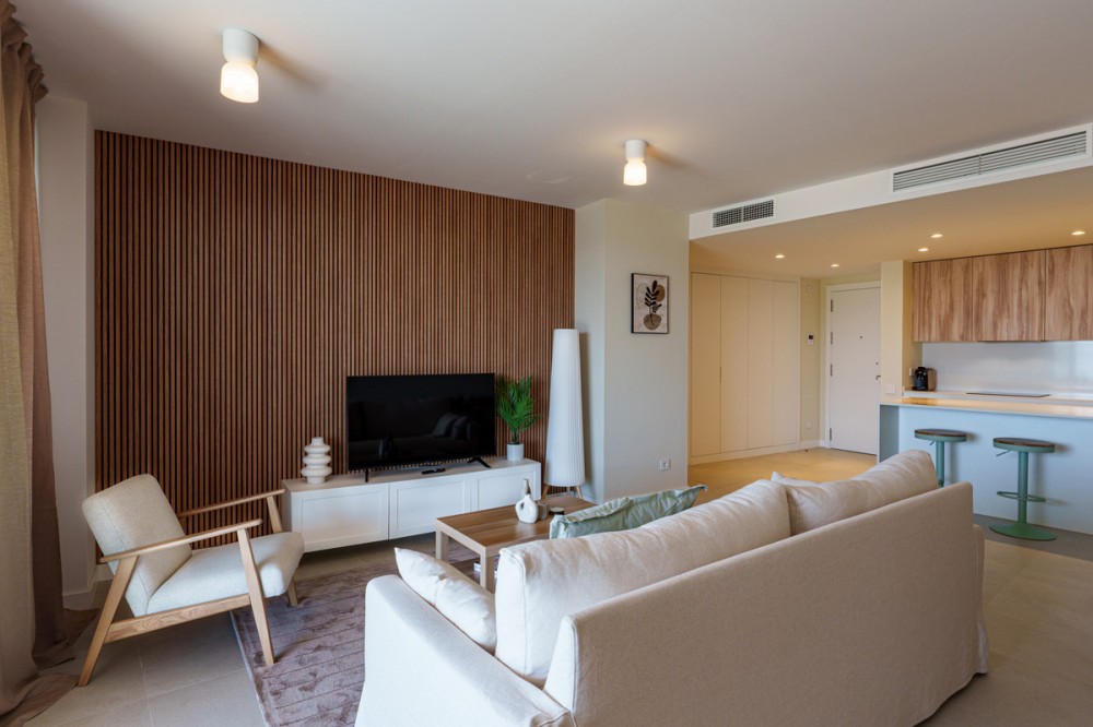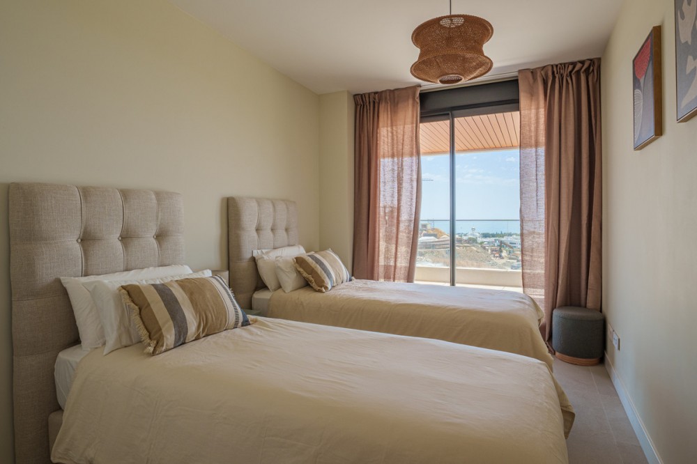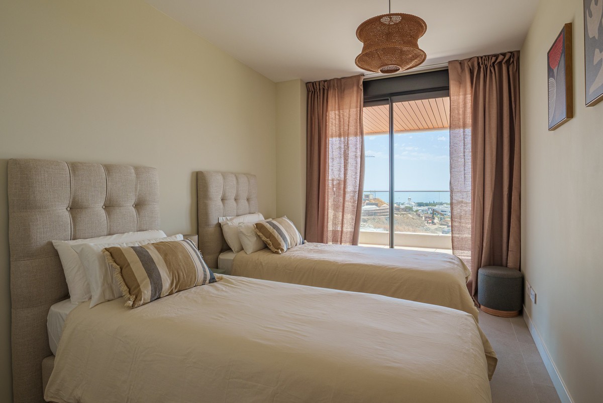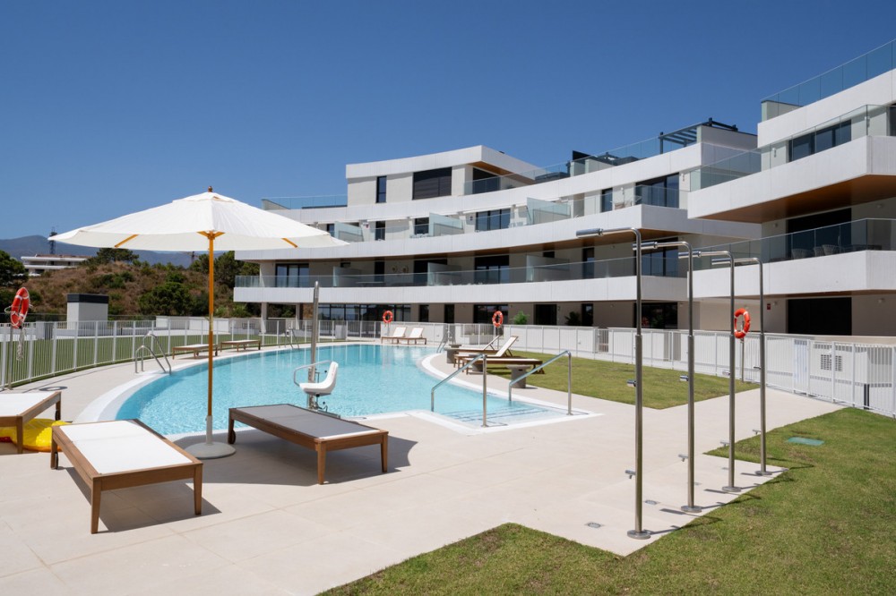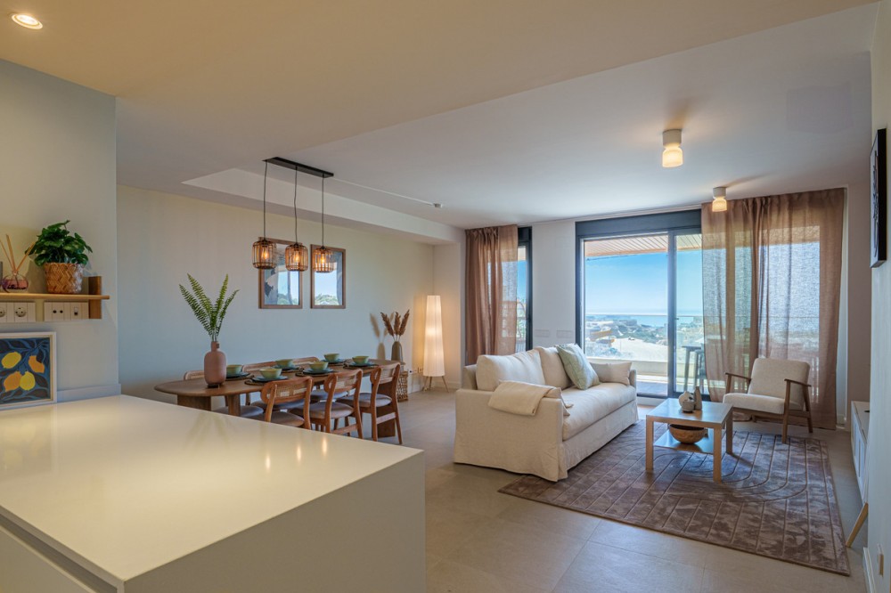 - Beautiful 2-bedroom, 2-bathroom apartment in the exclusive brand new urbanization of Vanian Views in Estepona. The apartment features two generously sized bedrooms, both filled with natural light and decorated in soothing neutral tones which provides direct access to a private terrace, offering the perfect spot to enjoy your morning coffee or unwind in the evening. The two bathrooms are beautifully designed with contemporary fixtures with underfloor heating The open-plan living room, creates an inviting and serene space for relaxation. It opens seamlessly onto a large private terrace equipped with comfortable outdoor seating, ideal for al fresco dining or simply soaking in the panoramic sea views. The modern kitchen, open to the living area, is fully equipped with high-quality appliances and ample storage, making it a functional yet stylish space for cooking and entertaining. Vanian Views is a modern and exclusive residential development, combining semi-oval architectural design, breathtaking sea views, and an exceptional location next to Selwo Natural Park. It is an ideal choice for those seeking a contemporary home in a natural, well-connected setting—whether as a primary residence, a second home, or a high-potential rental investment. De community offers an outdoor swimming pool, a co-working area, gym and spa