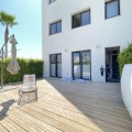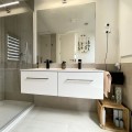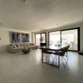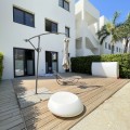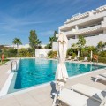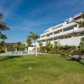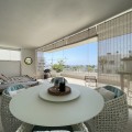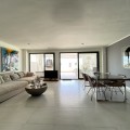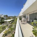 - We present this exceptional ground floor apartment located in the sought-after area of Las Olas, in West Estepona. The property, with a built area of 182m² and 90m² of interior space, stands out for its transformation from the original three bedrooms to a modern two-bedroom design, allowing you to enjoy a 30m² living room, providing greater space and comfort to the living area. It has two bedrooms and two bathrooms, ideal for both families and couples who value space and functionality. The apartment has a 45m² private terrace and a 45m² ground floor patio, both perfect for enjoying the Mediterranean climate, the sun and the partial sea views. The property has a fully equipped open-plan kitchen, separate laundry area, air conditioning and built-in wardrobes that optimise the use of space. The property is part of a gated community that offers a wide range of communal services such as a swimming pool, gardens, lift and video surveillance system. Accessibility is guaranteed for people with reduced mobility, and there is a private garage for added comfort and security. In addition, its proximity to schools, shops, public transport, golf courses, the beach and children's play areas makes it an unbeatable option in Estepona. Complementing the comfort and social life are spaces such as the covered terrace, barbecue and landscaped surroundings, ideal for gatherings with family or friends. This property is in excellent condition and represents a unique opportunity for those seeking quality of life, proximity to services and a privileged location on the Costa del Sol.