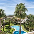 - Top floor apartment in the popular complex of Nordic Royal Club. Situated on the 5th floor gives the apartment beautiful views over the well kept garden towards the sea. There are 2 well sized bedrooms and 2 bathrooms. The lounge area and master room opens up towards the glassed in terrace. The urbanisation has a 24 hr reception ensuring good security and peace of mind. The apartment comes with an underground parking and storage room. From the parking there is access to the apartment floor by the elevator. Hot and cold water are included in the community fee.