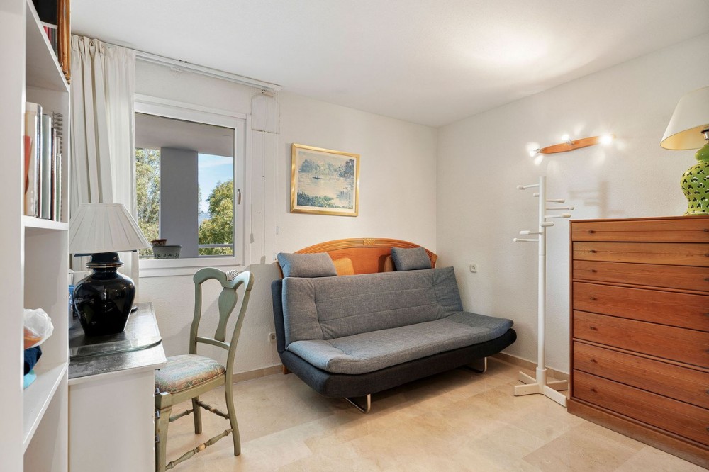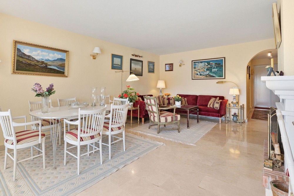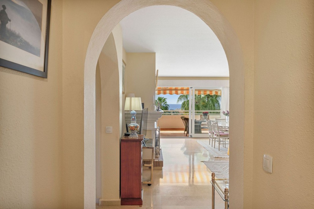 - Top floor apartment in the popular complex of Nordic Royal Club. Situated on the 5th floor gives the apartment beautiful views over the well kept garden towards the sea. There are 2 well sized bedrooms and 2 bathrooms. The lounge area and master room opens up towards the glassed in terrace. The urbanisation has a 24 hr reception ensuring good security and peace of mind. The apartment comes with an underground parking and storage room. From the parking there is access to the apartment floor by the elevator. Hot and cold water are included in the community fee.