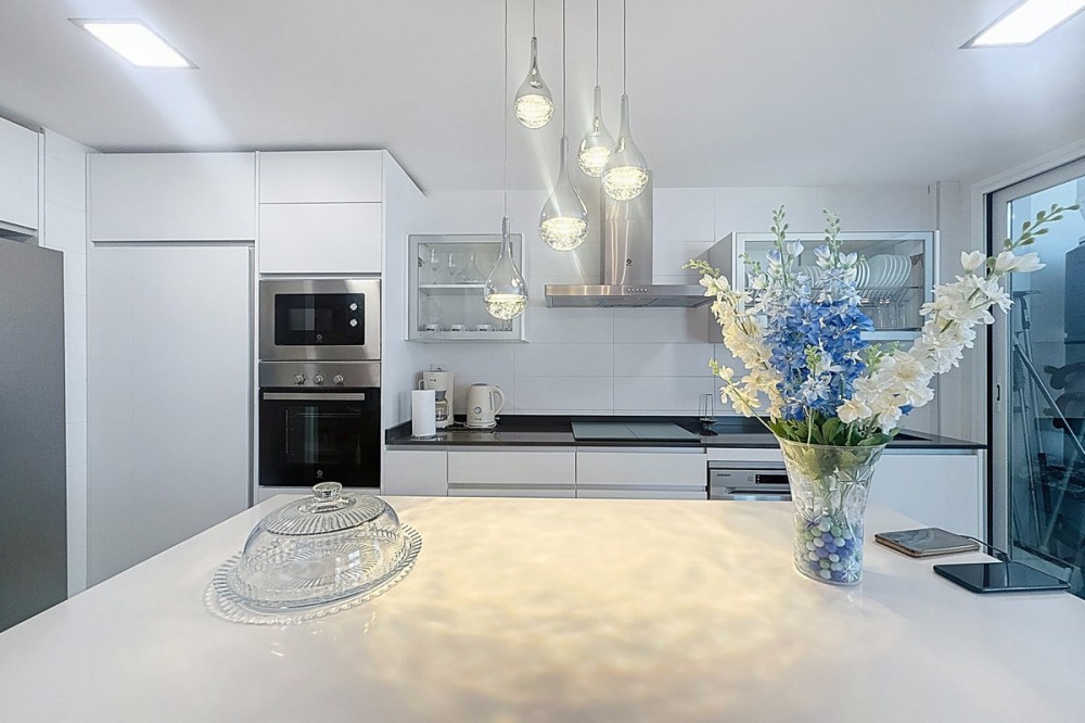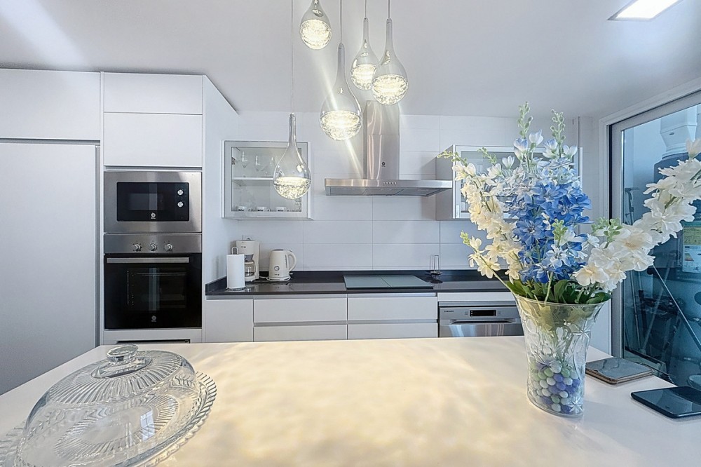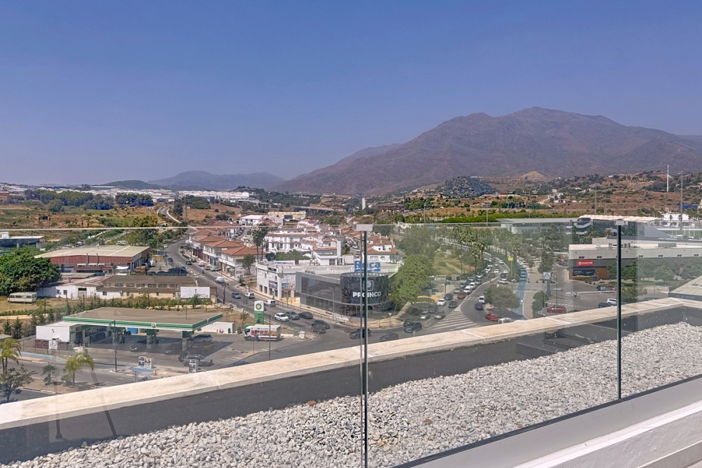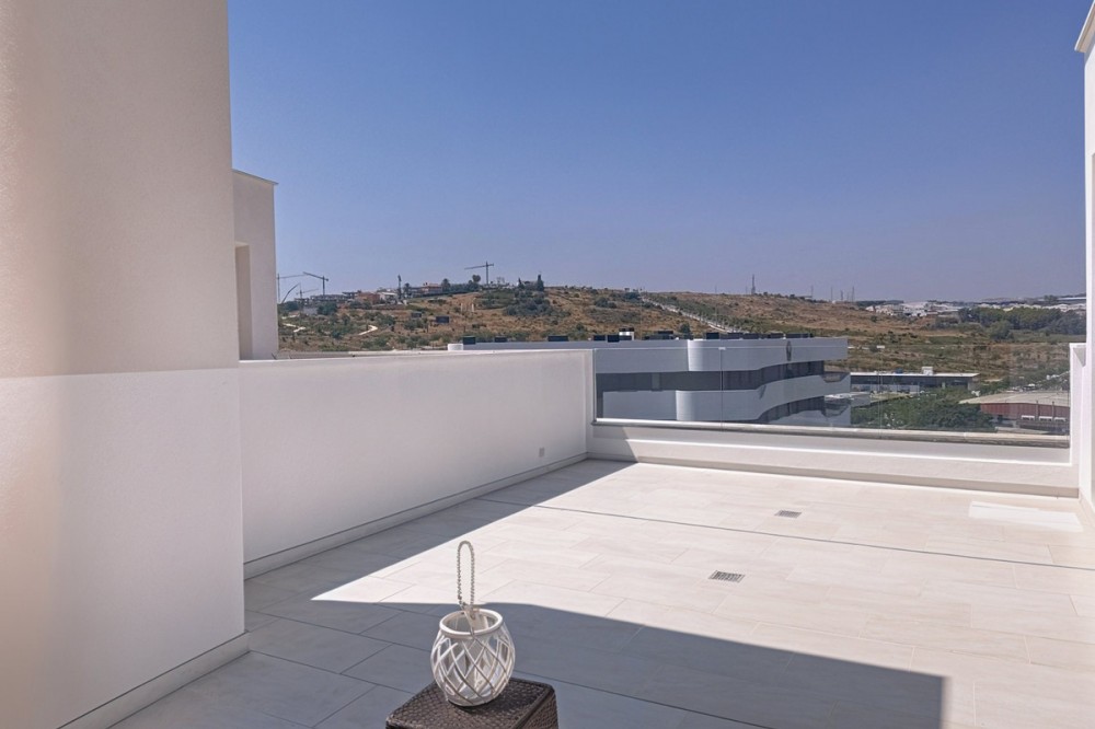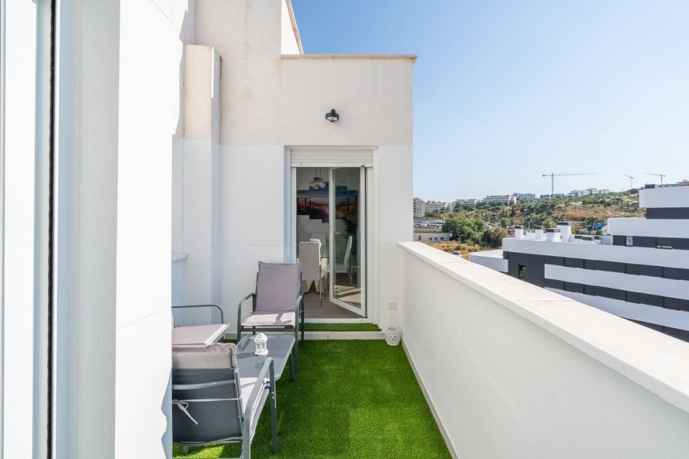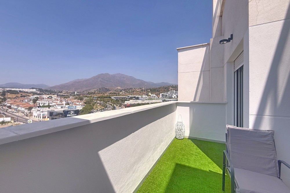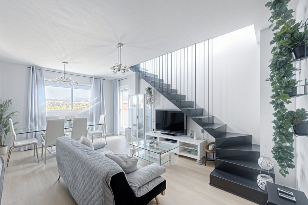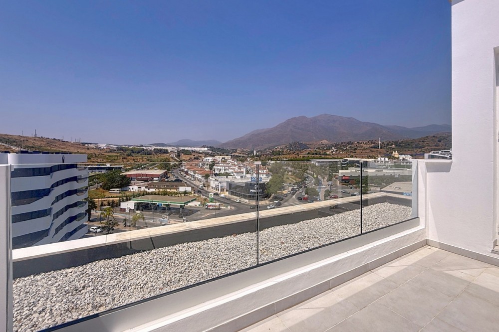 - Located in the very centre of Estepona, this modern duplex penthouse offers the perfect combination of urban convenience and Mediterranean charm. Its privileged setting places you within walking distance of shops, schools, playgrounds, public transport, and just minutes from the beach, the port, and several golf courses. The property boasts 187 m² built (101 m² interior), smartly distributed over two levels. It features 3 bedrooms and 2 bathrooms (one en suite), making it ideal for families or for those seeking extra space. The home is presented in excellent condition, fully furnished and equipped with air conditioning and an aerothermal system for maximum energy efficiency. The open-plan kitchen connects seamlessly with the living and dining area, which flows out to a private terrace with wonderful views of the mountains. The upper level is home to a fantastic private 30m² solarium, perfect for sunbathing, entertaining, or simply enjoying the Costa del Sol lifestyle. Additional features include a laundry room, storage room, and private parking space included in the price. On the rooftop of the building, residents also benefit from a communal swimming pool, an ideal spot to relax on warm summer days. Built in 2021 and situated on the 7th floor with lift, this penthouse is ready to move into and offers the rare chance to enjoy a modern home in one of Estepona’s most desirable areas. Key Features 187 m² built | 101 m² usable 3 bedrooms | 2 bathrooms (1 en suite) Private terrace + solarium Private parking & storage room Built in 2021 | Excellent condition Communal rooftop pool 7th floor with lift A unique opportunity to experience Estepona at its best — combining location, comfort, and lifestyle in one exceptional property.