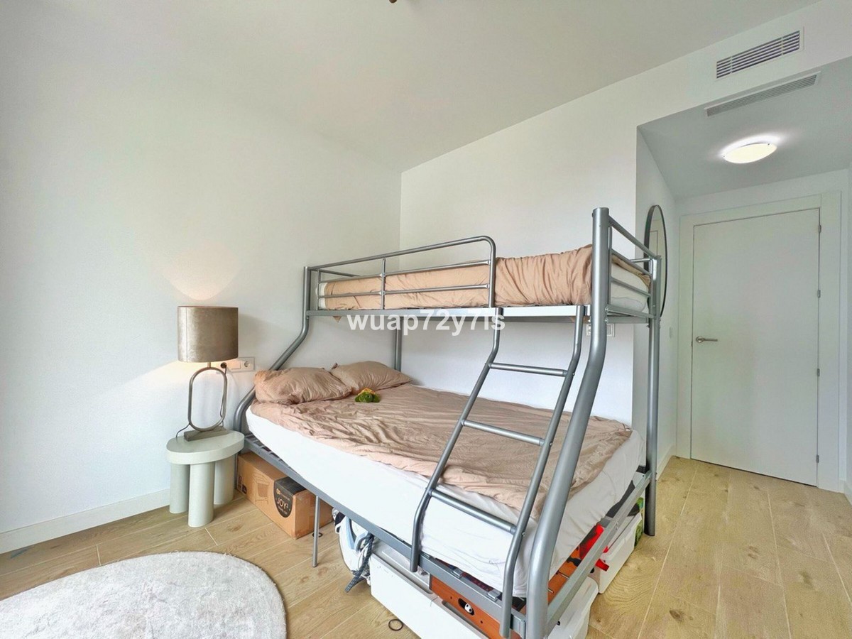 - Two-Bedroom Apartment with Spacious Terrace and Sea Views in One Eighty, Estepona We are delighted to present this elegant ground-floor apartment in the prestigious One80 residential complex. With two bedrooms and two bathrooms, it offers the perfect balance between comfort and style, making it ideal both for permanent living and as a holiday retreat by the sea. Upon entering the apartment, you are welcomed by a bright and spacious living room that combines a comfortable lounge with sofas, a dining area, and a fully equipped open-plan kitchen. Large sliding doors flood the space with natural light and provide direct access to the generous terrace. To the left lies the first bedroom with its own en-suite bathroom, while further along you will find the master bedroom, also featuring an en-suite and direct access to the terrace. The true highlight of this property is its very large covered terrace, which connects all rooms, including the living room, kitchen, and both bedrooms. This exceptional outdoor space is designed for enjoying the Mediterranean lifestyle, with a lounge area furnished with sofas, a dedicated barbecue space, and a private section with natural grass where you can create your own green garden corner. From here, you can enjoy beautiful sea views, making the terrace a perfect place to relax or entertain guests throughout the year. The One80 complex provides excellent facilities such as an outdoor swimming pool, a modern gym, and a covered area with special flooring designed for yoga and Pilates. Its location is equally appealing, just three minutes from Colegio San Juan XXIII and Estepona Football Center, with restaurants and supermarkets within walking distance. The beach and the Elba Estepona Gran Hotel & Thalasso Spa are only five minutes away, while Valle Romano Golf Club can be reached in ten minutes and Estepona Golf in fifteen. Estepona’s charming old town is also only fifteen minutes away, the Sotogrande port twenty minutes, Puerto Banús twenty-five minutes, and Marbella’s historic center just thirty-five minutes by car. This apartment is the perfect choice for those who value comfort, spacious terraces, sea views, and life in a modern residential complex with excellent facilities in a prime location.