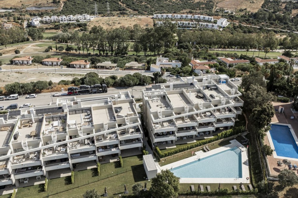 • Elegant 3-Bedroom Apartment in Sunny Golf, Estepona Welcome to this stylish middle-floor apartment in Sunny Golf, Estepona. Delivered in 2024 and upgraded with care, it offers a modern living experience on the Costa del Sol. The home features a custom-designed kitchen, freshly painted and wallpapered interiors, insect screens, and sheer curtains for comfort and style. The highlight is the 57 m² terrace, which can be fully enclosed to seamlessly extend your living space and allow year-round enjoyment of the sea, golf, and countryside views. With 3 bedrooms and 2 bathrooms, a southeast orientation, air conditioning, and high-quality finishes, this property is move-in ready. The gated complex provides landscaped gardens, a communal pool, lift access, and secure parking. Perfectly located near shops, Estepona town, and surrounded by golf courses, this apartment is an ideal choice for a luxury holiday home, smart investment, or permanent residence. Key Features & Upgrades • Entire apartment newly painted and wallpapered • Tailor-made, upgraded kitchen • High-quality insect screens and sheer curtains installed • Large 57 m² terrace fully enclosable, allowing you to extend the living area and enjoy year-round comfort Property Details • 3 Bedrooms | 2 Bathrooms • Built: 98 m² | Terrace: 57 m² • Orientation: South-East • Condition: Excellent