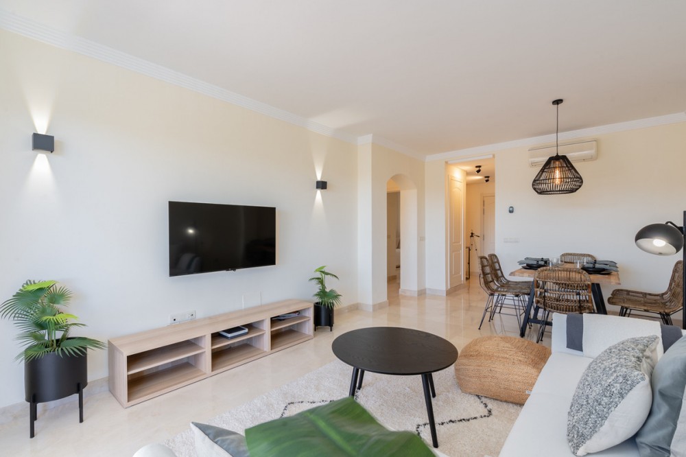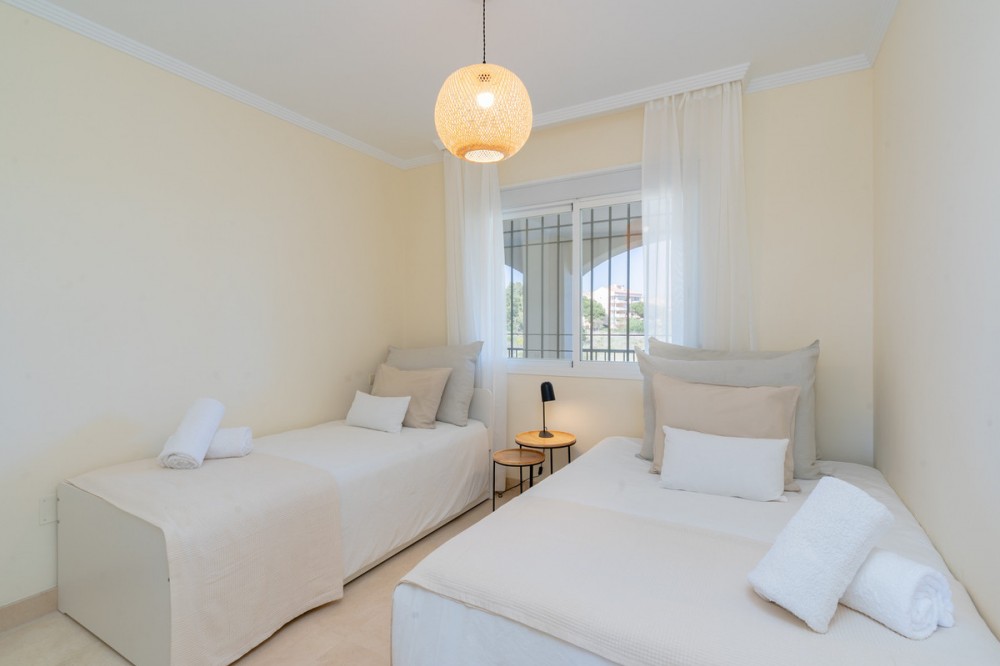 - This bright and welcoming apartment offers 2 bedrooms and 2 bathrooms, set within a secure gated community featuring private parking, lift access, and beautifully maintained gardens. Large windows fill the home with natural light and open onto picturesque views of the mountains and the stunning organic-style communal swimming pool. The community itself provides a safe and tranquil environment, perfect for families or those seeking a peaceful retreat. Residents can enjoy easy access to walking paths, green spaces, and nearby sports facilities. The location is ideal, just a short drive from the sparkling Mediterranean coast, exclusive beach clubs, and the renowned Selwo Aventura Zoo. International schools, supermarkets, gourmet restaurants, and leisure facilities are all within easy reach. For those who enjoy outdoor activities, there are golf courses, tennis clubs, and hiking trails nearby. Estepona town: approx. 10 minutes Marbella: approx. 15 minutes Málaga Airport: approx. 45 minutes This is a wonderful opportunity to embrace the Costa del Sol lifestyle, whether as a holiday retreat or a full-time residence. Kindly note that short term rentals are not allowed in this complex.