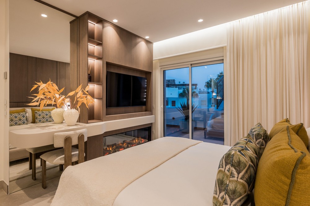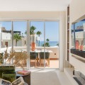 - Experience the ultimate in Mediterranean living with this stunning beachfront penthouse, located in the prestigious Bahía del Velerín community between Marbella and Estepona. Designed to the highest standards, this exclusive residence combines elegance, comfort, and breathtaking sea views in one of the Costa del Sol’s most sought-after areas. Bahía del Velerín offers residents a truly privileged lifestyle, with direct beach access, a beautiful pool area complete with a charming snack bar, and lush tropical gardens that create a serene, resort-style atmosphere. The community also provides 24/7 security, ensuring privacy and peace of mind. Inside the penthouse, you’ll find an expansive living room and a luxurious master bedroom, both opening onto spectacular, views of the Mediterranean Sea. An elegant electric fireplace adds a touch of modern sophistication, while large windows flood the interiors with natural light. The highlight of this property is the private rooftop terrace, an oasis designed for relaxation and entertaining. Whether enjoying morning coffee with the sunrise or hosting friends against the backdrop of the glittering coastline, this outdoor space makes every moment unforgettable. Perfectly positioned between Marbella and Estepona, the penthouse combines beachfront tranquility with proximity to world-class dining, golf courses, and luxury amenities, making it an ideal choice for a permanent residence, holiday retreat, or investment opportunity.