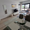 - Beautiful bright new 2 bedroom, 2 bathroom apartment in Estepona Gardens, which is a development located in the centre of Estepona town. This latest phase was built only 2 years ago in 2023. It is only 5 minutes walk from the historical Old Town and 10 minutes to the beach. Local amenities such as health centres, schools, parks, restaurants, shops and supermarkets are all within a short walk. This modern apartment has an entrance hall, 2 bedrooms, 2 bathrooms, (1 family bathroom with bath & shower, 1 ensuite with shower), separated by a small hall and door, leading to a large bright sitting-room, kitchen, utility room and terrace. It includes a garage space and a storage room. It is south west facing, located inside the complex, on the first floor overlooking the pool and children’s play area. Some of the features include the fitted kitchen and utility room, with all the appliances, air-conditioning hot/cold, solar panels on the roof for hot wáter and full WiFi coverage, amongst others. This first floor apartment is accessible with own key access through secure gates with internal intercom, via lift and stairs. The complex has extensive communal areas and gardens, including a large swimming pool, playground for children, and an outdoor gym.