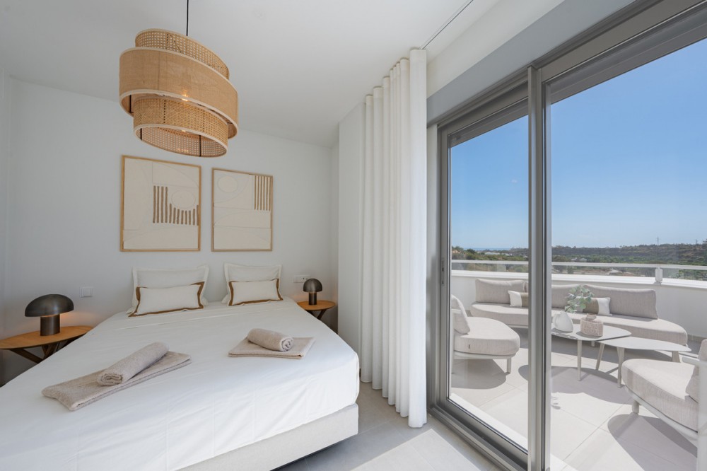 - Discover this stunning second-floor duplex penthouse, offering breathtaking panoramic views of the sea and mountains. The home features a spacious living room terrace and a rooftop terrace with a private solarium and elegant white pergola, perfect for enjoying the Mediterranean sun in complete privacy. The penthouse includes three bedrooms and three bathrooms, a private parking space, and a storage room, ensuring comfort and convenience for the whole family. Residents can enjoy a beautiful communal pool to relax and soak up the sun. The exclusive La Familia clubhouse provides access to a restaurant, indoor swimming pool, and gym. The complex itself also offers a gym and coworking space, combining luxury living with modern lifestyle amenities. Centrally located in Estepona, the property is just 5 minutes by car from the beach and nearby beach clubs. For nature and family fun, the Selwo Aventura wildlife park is a short drive away. Estepona is 10 minutes, Marbella 15 minutes, and Malaga Airport approximately 50 minutes. This penthouse offers the perfect combination of privacy, elegance, space, and a Mediterranean lifestyle with spectacular views.