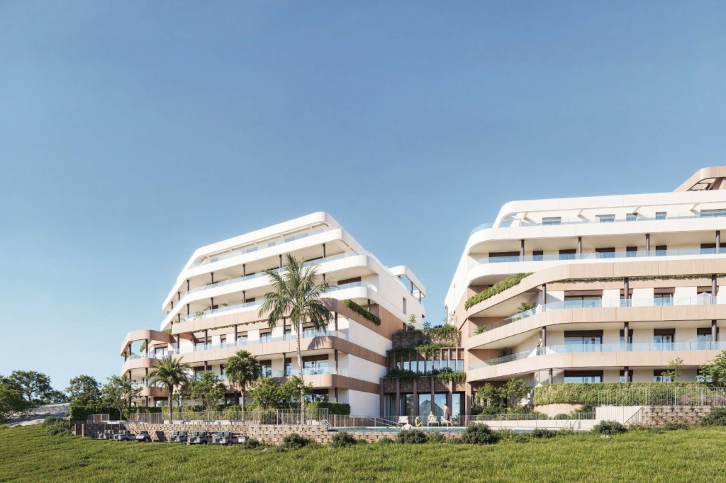 - 1 bed, 1 bath apartments SOLD OUT! 2 bed, 2 bath apartments from 320.000 euros. 75m2 built plus 25m2 terrace 3 bed, 2 bath apartments from 459.000 euros. 105m2 built plus 28m2 terrace Estimated delivery date: Q2 - 2028 / Prices excl. 10% VAT and incl. garage space and storage. Estepona Hills is an exclusive private residential complex consisting of 68 unique homes with 1, 2, and 3 bedrooms. It features ground floor units with private gardens and penthouses with large terraces offering stunning golf course and panoramic sea views. This development has been designed to offer a unique lifestyle that combines nature, peace, and comfort in a privileged environment. The contemporary design blends seamlessly with the Mediterranean landscape and its location within the golf course. The project includes a wide range of community amenities aimed at enhancing the quality of life for its residents, such as two outdoor swimming pools (one of them on the rooftop), a fully equipped gym, coworking space, and extensive communal areas for year round relaxation and enjoyment. Estepona Hills is located in one of the most exclusive areas of Estepona, just 10 minutes from the town center with all kinds of services and amenities, and 5 minutes from the best beaches in the area. It is also surrounded by renowned golf courses such as La Finca Cortesín, Valle Romano, and Azata Golf.