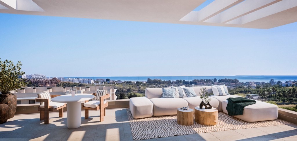 - 2 bed, 2 bath apartments from 439.000 euros 3 bed, 2 bath apartments from 455.000 euros 2 bed, 2 bath penthouses from 545.000 euros Prices excl. 10% VAT - Ready for occupation Q4-2026 This is a sustainable, modern development situated in Estepona, Costa del Sol with several phases. It offers an ideal lifestyle with communal areas and landscaped gardens that incorporate the environment as an essential design element. Its innovative and solid architectural construction provides large terraces and windows, enabling sunlight to enter all year round. The property offers spectacular views of the sea, beaches, and mountains and provides a perfect location to enjoy surfing, hiking, horse riding, golf, shopping, and cultural events throughout the year. The development comprises high-rise properties, private gardens, and panoramic solariums with the Mediterranean always at your feet.