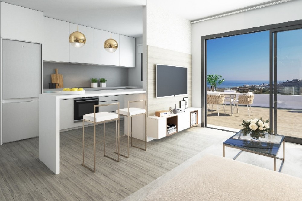 - 2 bed, 2 bath apartment SOLD! 3 bed, 2 bath apartment SOLD! 3 bed, 2 bath penthouse from 710.000 euros 4 bed, 3 bath penthouse SOLD! Prices excl. 10% VAT and incl garage space. Ready for occupation! A small luxurious apartment complex of only 48 apartments at walking distance beach and amenities! The apartments have lots of natural light and come with an underground parking space. This sensational new development enjoys an enviable position in a fabulous location close to the beach in the chic much sought after town of Estepona, situated to the West of the renowned areas of Marbella and Banus. The stunning modern homes boast superb terrace spaces and spectacular views of the Mediterranean. One80 Residences comprises 72 contemporary two, three and four bedroom apartments and penthouses distributed over four low rise buildings located in the much sought-after Costa del Sol area of Estepona. The stylish apartments are in a prime position for enjoying the luxury outdoor lifestyle southern Spain is known for with the blue flag beaches and a wealth of amenities within walking distance, as well as being on the doorstep of the best golf courses on the Costa del Sol. This area is well coveted for its perfect location in the heart of the Costa del Sol with its own fantastic infrastructure of international and local schools, modern hospitals, as well as a superb selection of sporting facilities such as Equestrian centres and tennis clubs. One80 Residences is just 15 minutes West of Marbella and Puerto Banus which offer fine dining, exclusive boutiques, trendy beach clubs and yacht clubs, whilst the polo fields and high-class marina of Sotogrande are 15 minutes in the other direction. These sleek contemporary homes are well placed for enjoying all that these vibrant and well-known resorts offer, as well as all the health benefits of Mediterranean living. These modern architecturally pleasing apartments and penthouses blend into the Andalusian landscape on gently graduated terraces allowing for spectacular views of the coast line creating the perfect position for your new life in the sun. Ideal as a first or second residence or an investment opportunity.